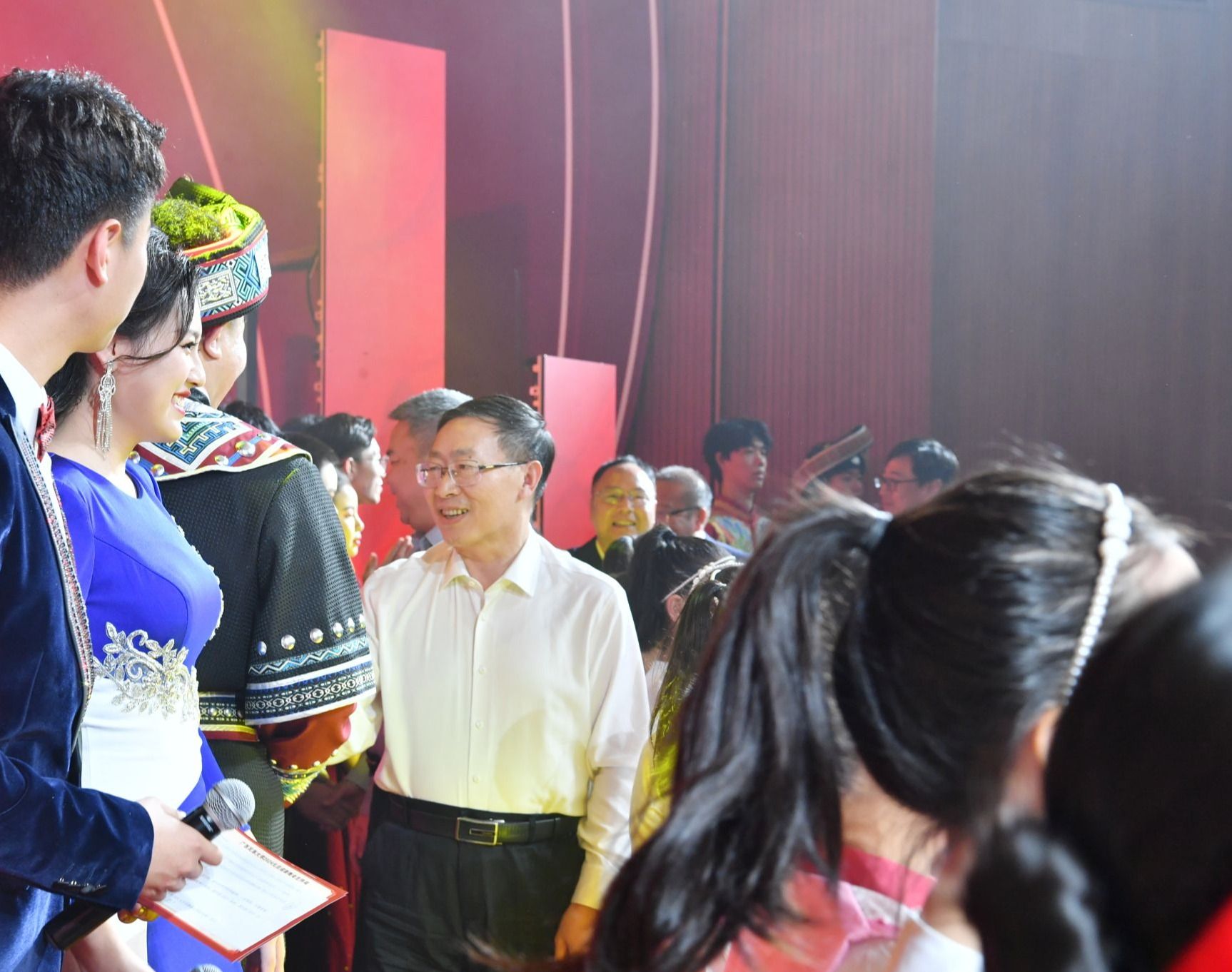 校领导与演职人员亲切握手