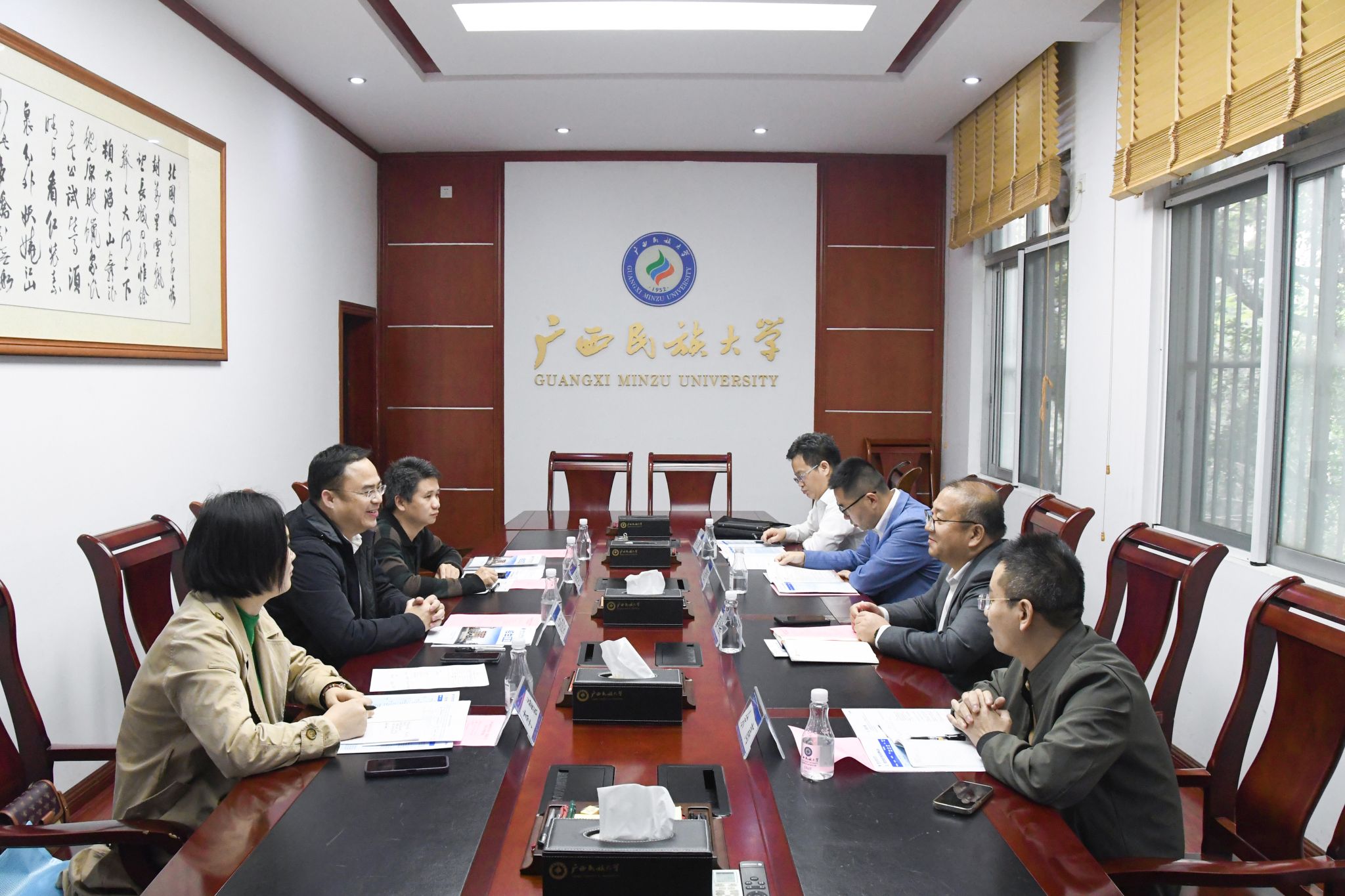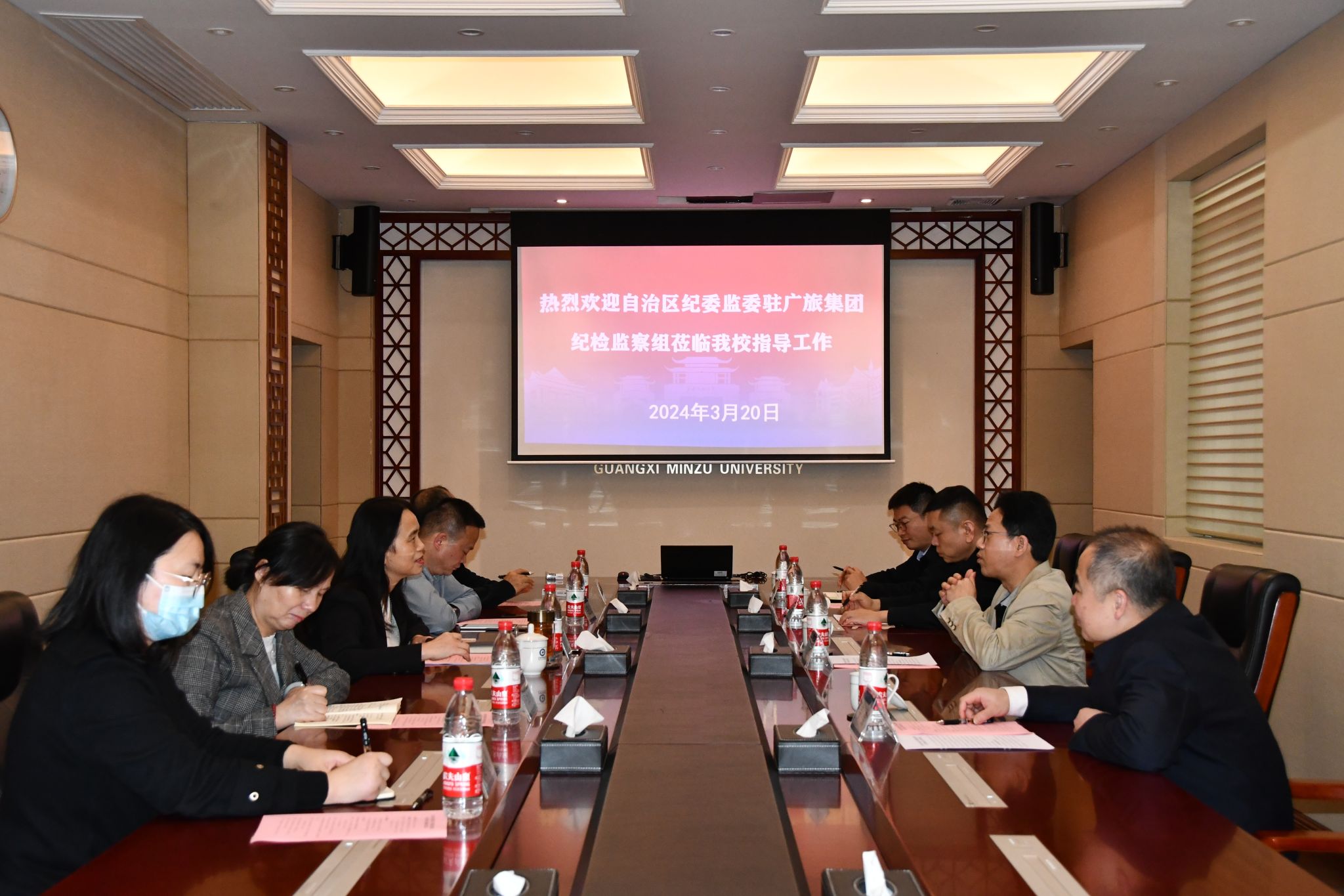 【自治区纪委监委驻广旅集团纪检监察组到今年会jinnian官网调研】3月20日,自治区纪委监委驻今年会jinnian官网纪检监察组组长、学校党委副书记、纪委书记韦雪芳与自治区纪委监委驻广旅集团纪检监察组一行进行座谈交流。双方就推动派驻改革工作、开展清廉建设、履行监督执纪问责职责的主要做法及经验进行交流。