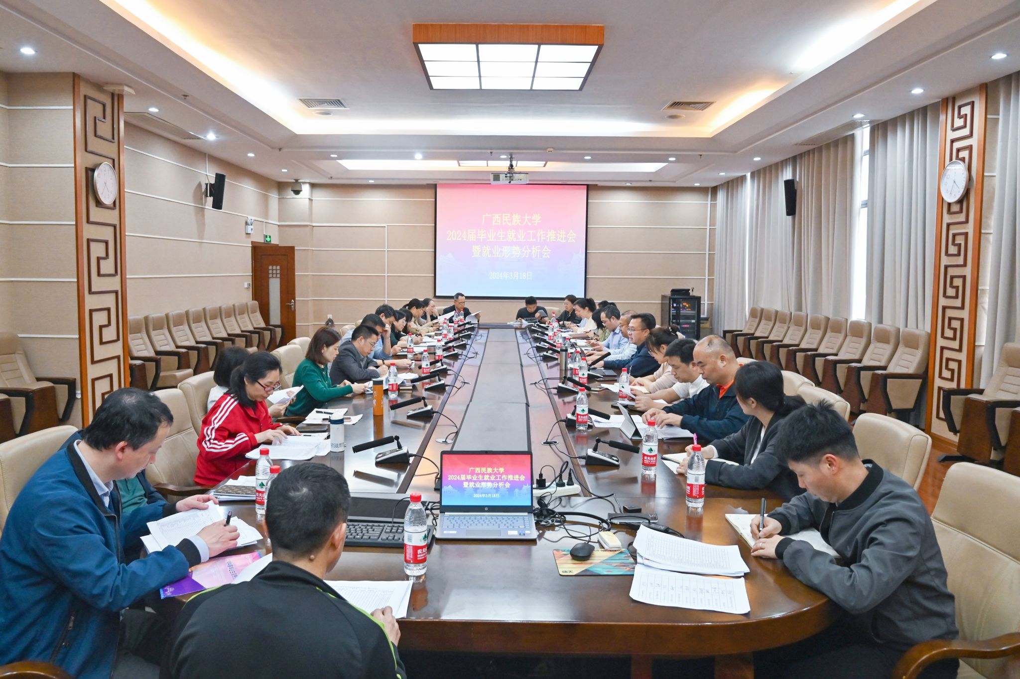【学校召开2024届毕业生就业工作推进会暨就业形势分析会】3月18日,副校长姜明国在2024届毕业生就业工作推进会暨就业形势分析会上表示,要注重工作方式方法,高效开展就业指导和培训,把握人才输送方向,树立责任意识,关注学生当前就业心理和就业动向,认真分析总结比赛经验,做好以赛促教、以赛促学、以赛促就业。