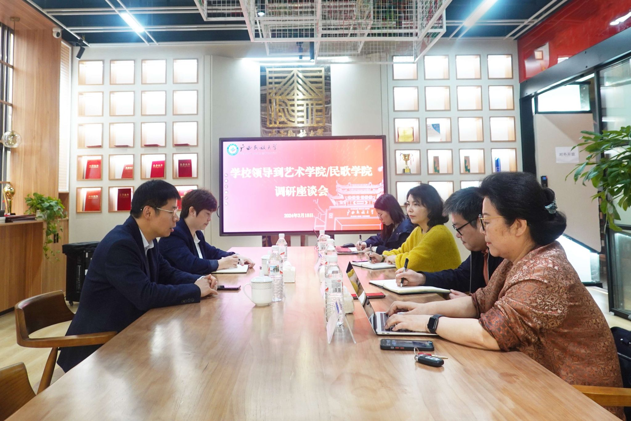 【广西开放大学到我校交流】3月19日,副校长姜明国与广西开放大学副校长刘绍英一行座谈交流。姜明国表示,我校大力支持专升本工作的开展,希望两校长期合作,共同推动两校的教育工作发展。双方还就专升本的生源情况、招生计划等方面进行研讨。