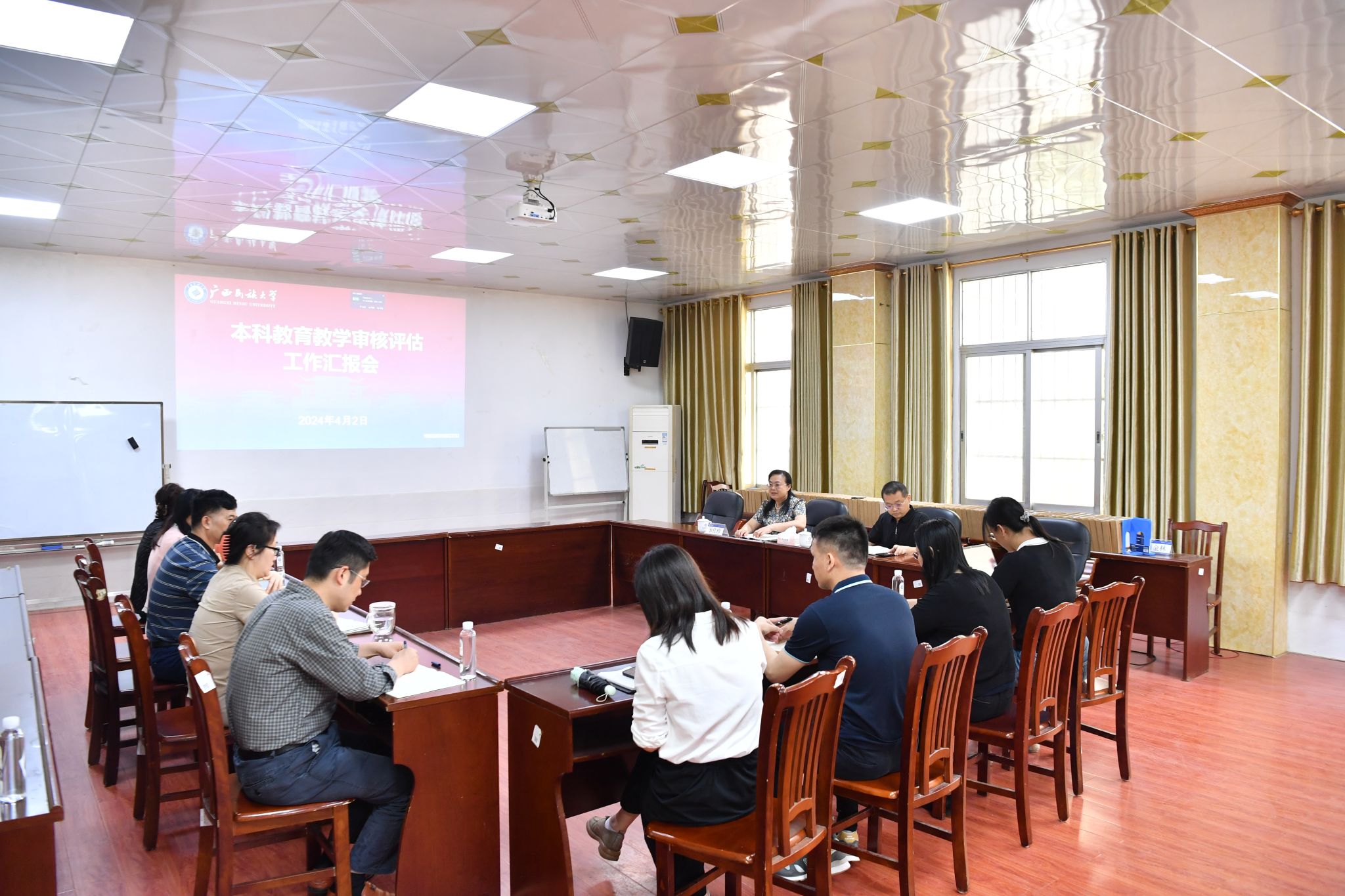 【大学生通讯社报道】4月2日上午,校长韦仕珍在博雅楼220室主持召开本科教育教学审核评估工作汇报会,有关职能部门负责人及评估办人员与会。