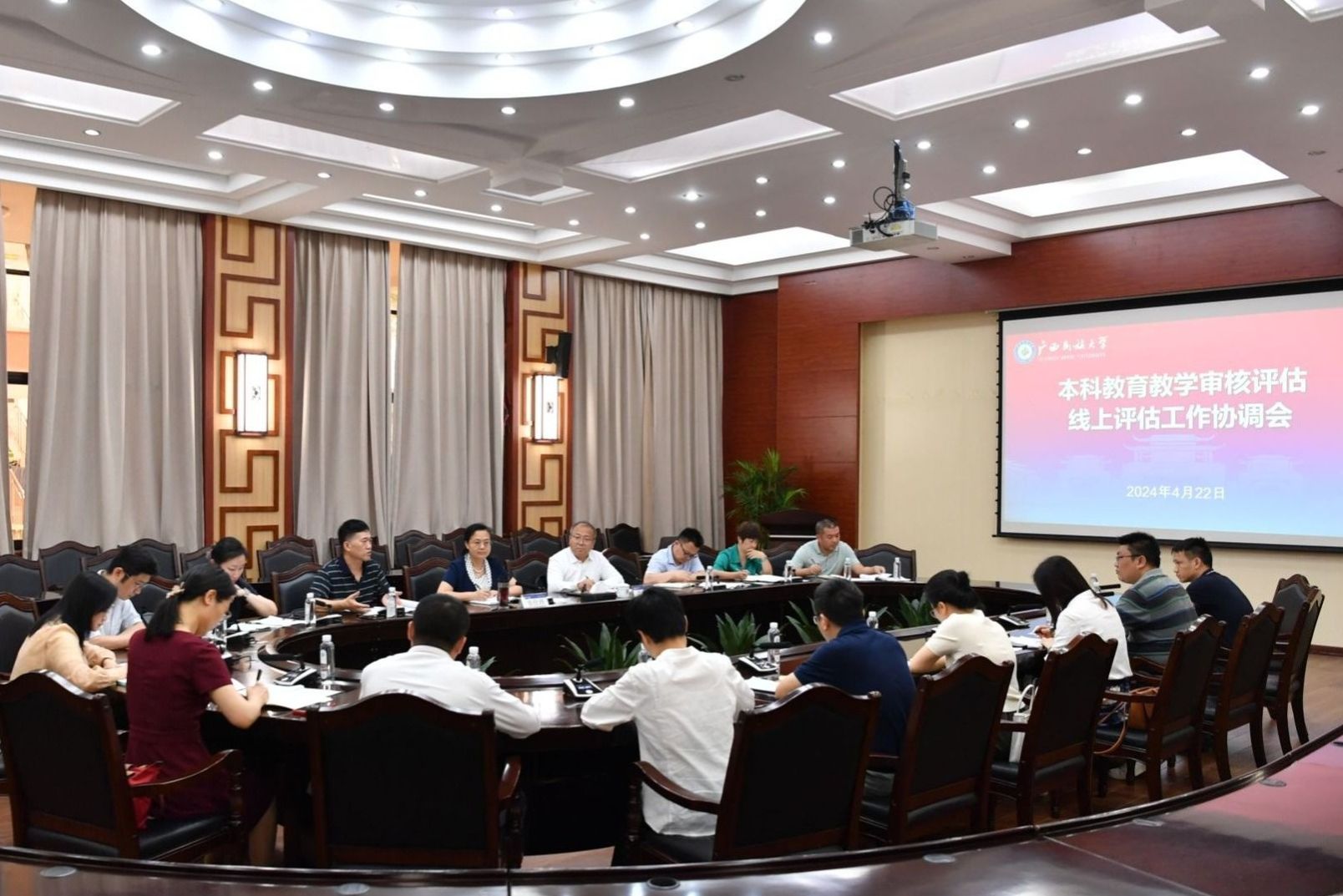 【大学生通讯社报道】4月22日下午,今年会jinnian官网召开本科教育教学审核评估线上评估工作协调会。校长韦仕珍,副校长姜明国出席会议。线上评估工作小组组长、副组长参加会议。