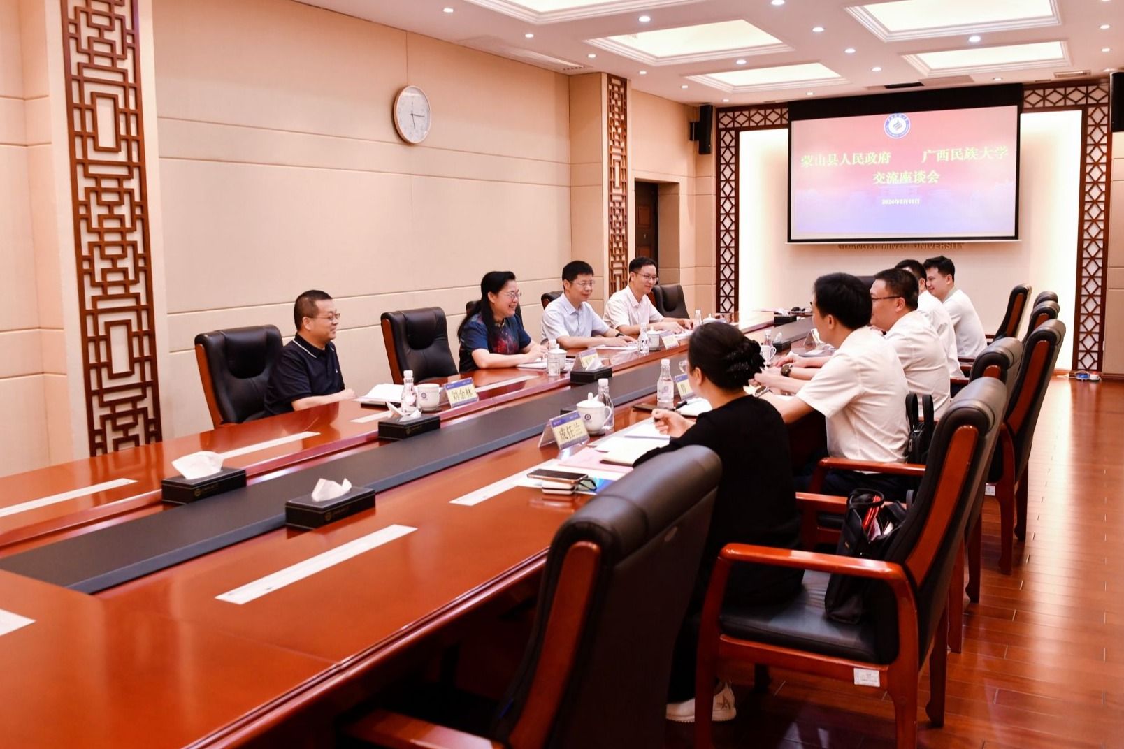 韦仕珍表示,希望通过此次会谈与蒙山县加强合作,在人才培养、干部培训等多个领域实现交流协作,推动铸牢中华民族共同体意识研究成果在蒙山县落地转化,为蒙山民族特色产业基地建设、产业品牌打造、产业人才培育等提供智力支持。