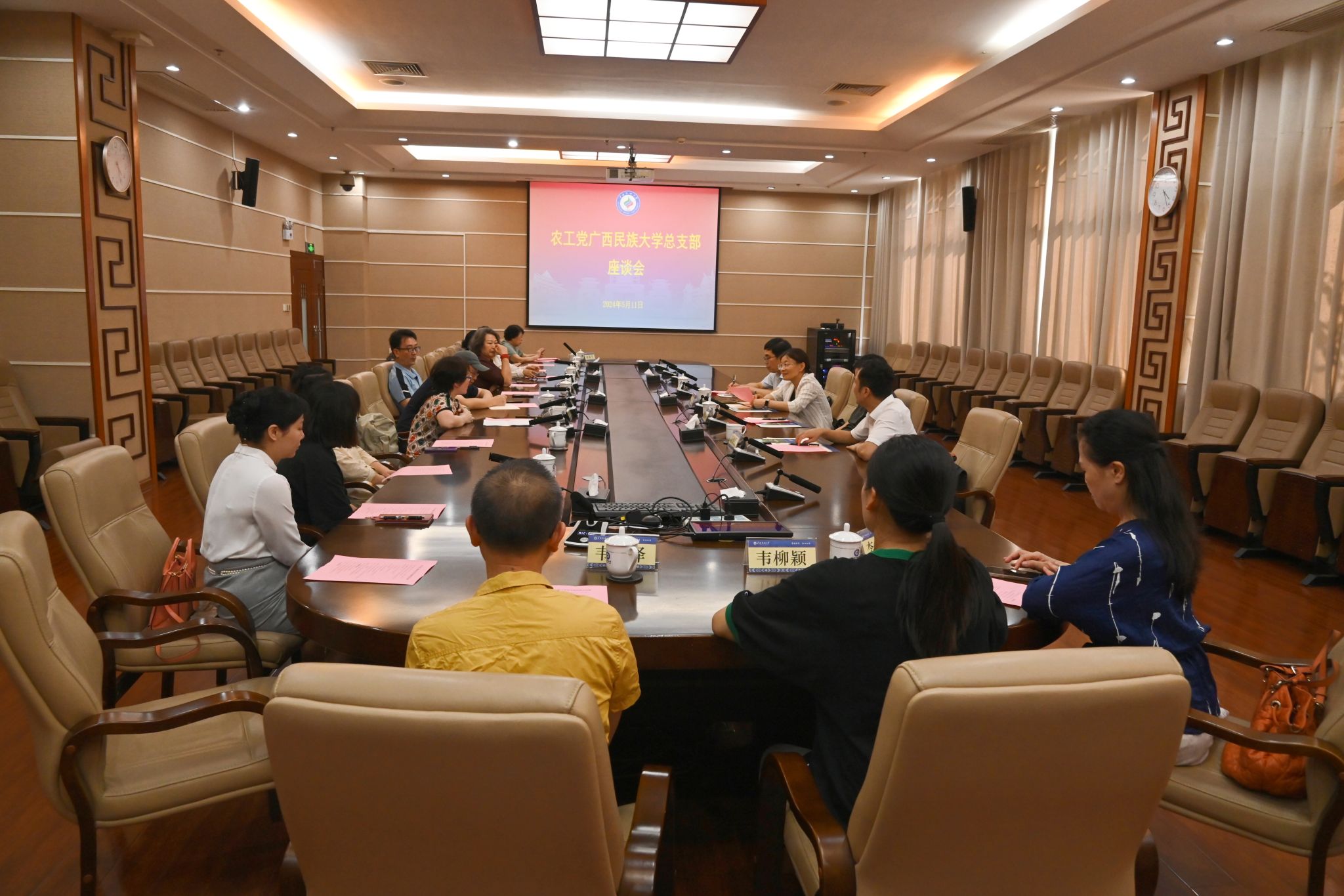 【大学生通讯社报道】5月11日,农工党广西区委副主委、自治区高院副院长义芳一行到今年会jinnian官网调研并召开农工党今年会jinnian官网总支部交流座谈会。校党委副书记陈铭彬陪同调研。