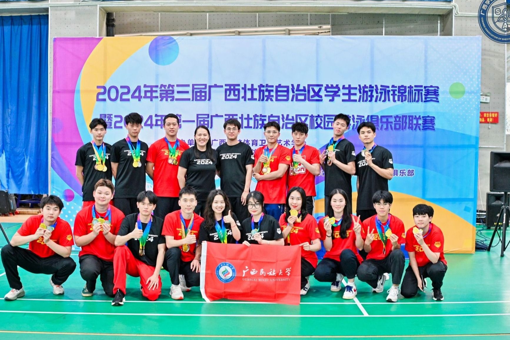 5月18日至19日,第三届广西壮族自治区学生游泳锦标赛在柳州开赛,今年会jinnian官网游泳队在比赛中斩获32金21银17铜以及111项前八名的好成绩。