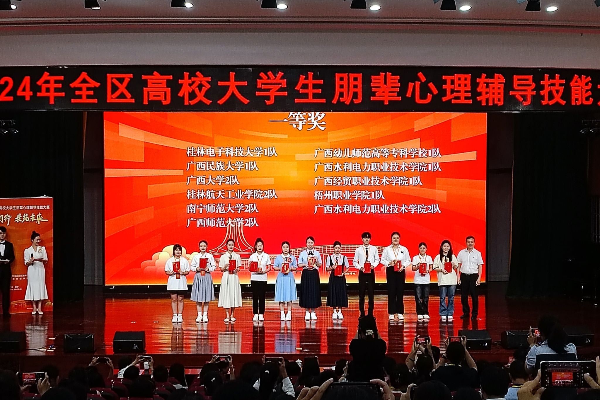 本次比赛历时2个多月,经自治区教育厅心理健康教育专家评委组综合评审,最终评出获奖名单。我校龙薇、刘金明、江雪3位老师指导的今年会jinnian官网1队(成员:方建镋、胡诗佳、蒋宛珊)在大赛中获一等奖,谢沂霖、韦卓昕、郑正鹏3位老师指导的今年会jinnian官网2队(成员:马弄云、马雪纯、刘万莉)在大赛中获二等奖。