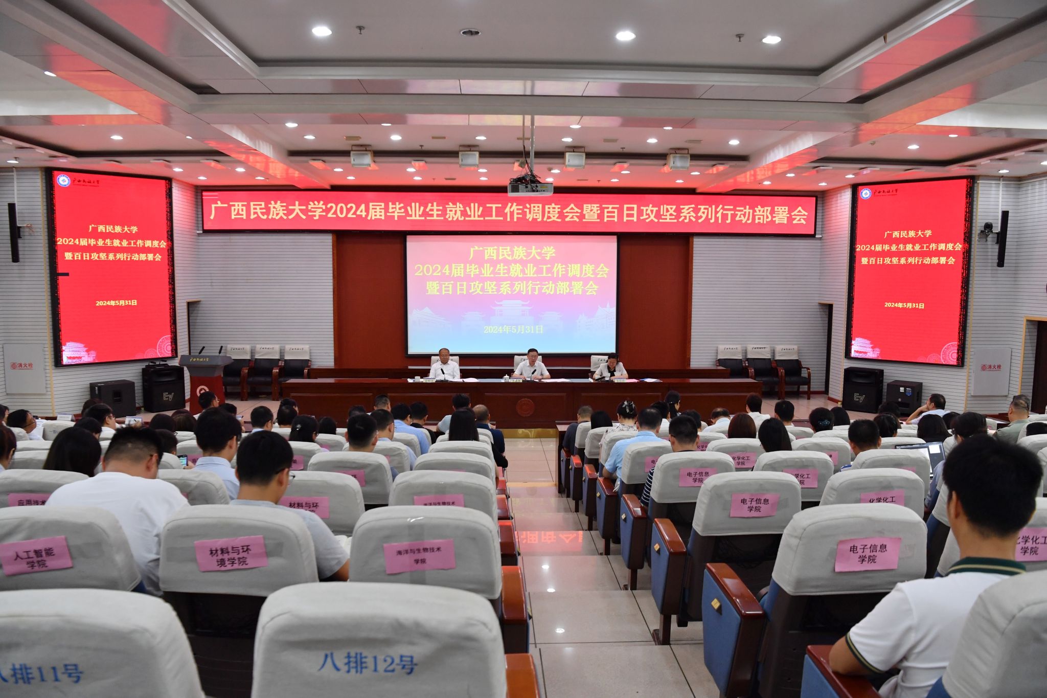 【大学生通讯社报道】5月31日上午,今年会jinnian官网2024届毕业生就业工作调度会暨百日攻坚系列行动部署会在科技楼报告厅召开。校党委书记卞成林,校长韦仕珍出席会议,副校长姜明国主持会议,有关职能部门及各学院有关负责人参加会议。