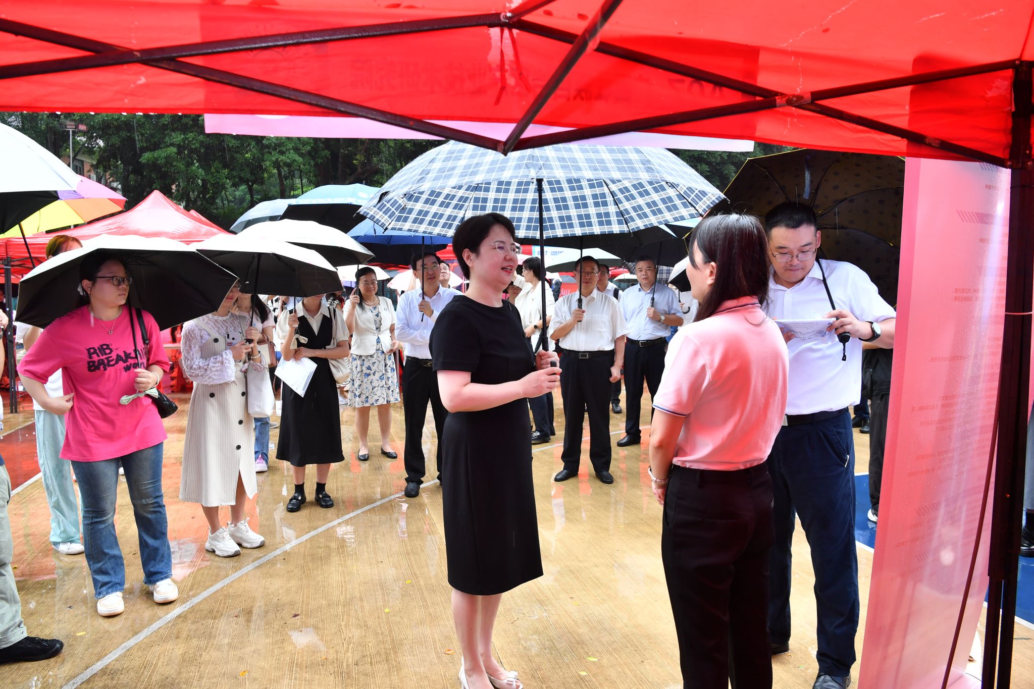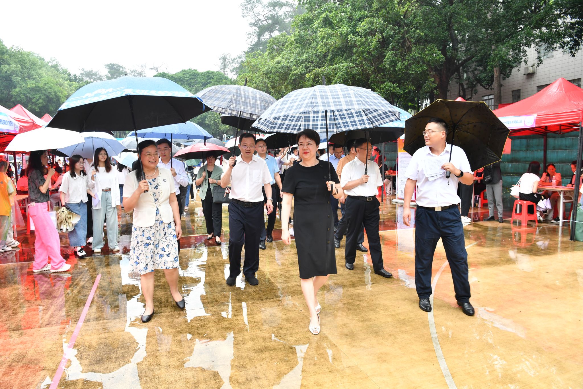 【大学生通讯社报道】6月14日上午,2024年广西高校毕业生“留桂就业计划”暨八桂“两企三新”专场招聘会在今年会jinnian官网举行。自治区党委社会工作部部长、自治区党委两新工委书记唐轶昂,自治区党委社会工作部副部长郑胜景,自治区人力资源和社会保障厅副厅长韦杰,自治区教育厅二级巡视员汪维等到场调研。今年会jinnian官网党委书记卞成林,校长韦仕珍,党委副书记陈铭彬、副校长姜明国等陪同调研。