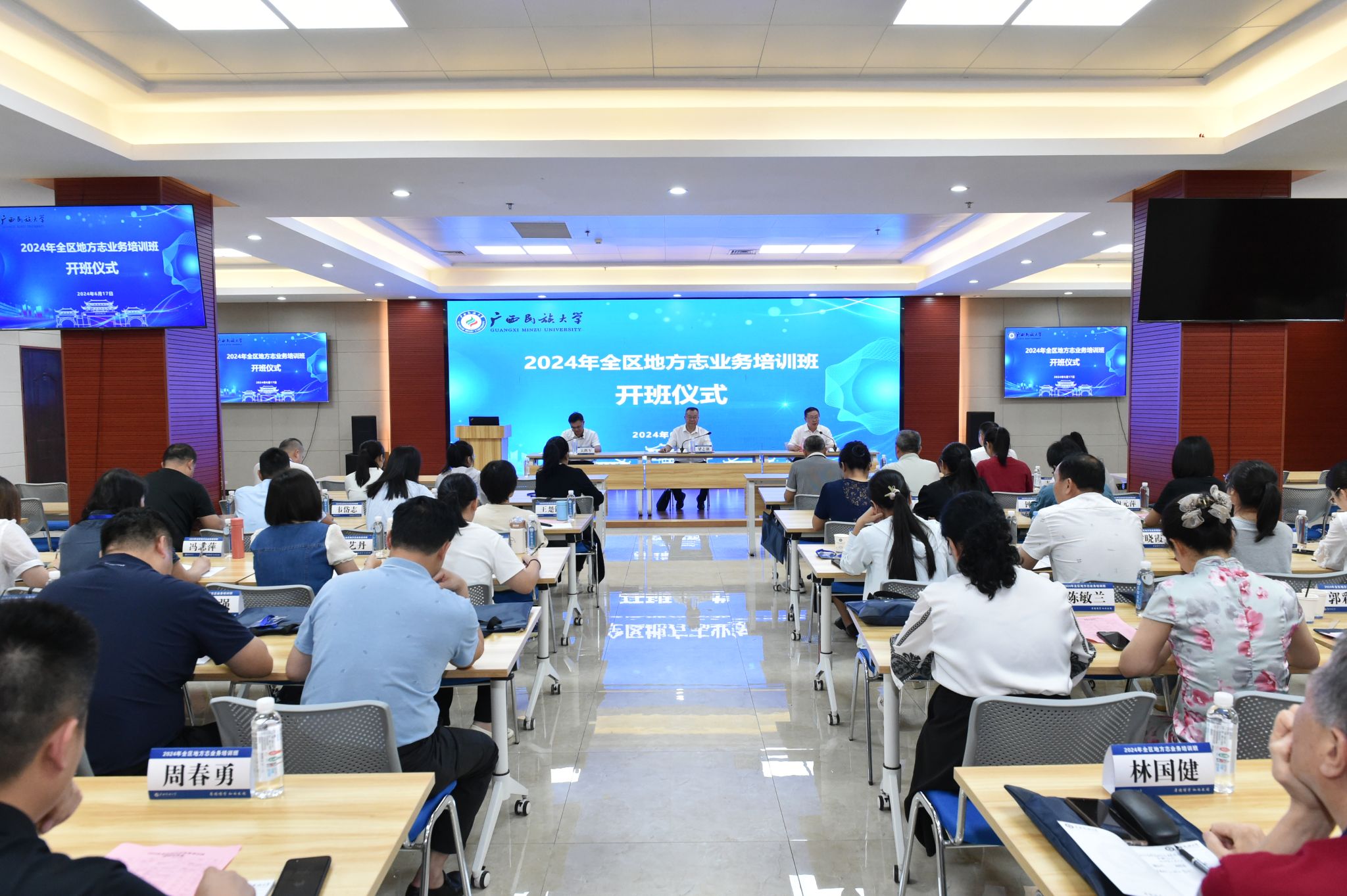 6月17日,2024年全区地方志业务培训班在今年会jinnian官网开班。自治区地方志办党组书记、主任梁志强出席开班仪式并作动员讲话,今年会jinnian官网党委书记、广西中华民族共同体意识研究院院长卞成林致辞并为培训班学员作首场辅导报告。自治区地方志办党组成员、副主任吴辉军主持开班仪式。全区地方志系统干部共50名学员参加培训。