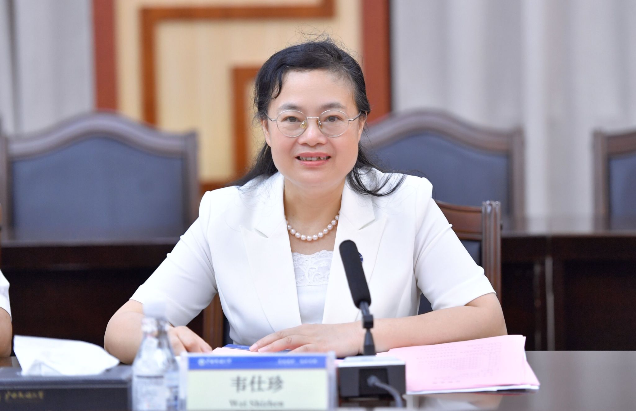 【大学生通讯社报道】6月25日上午,校长韦仕珍会见来校访问的泰国吞武里皇家大学校长玉娃腊·韦查威塔雅克棱一行。座谈会由副校长高兴宇主持。