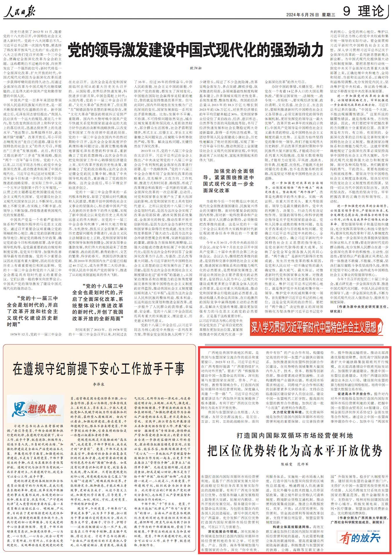 6月26日,东盟学院/中国-东盟区域国别研究院陈瑶雯教授团队在《人民日报》理论版发表研究成果《打造国内国际双循环市场经营便利地 把区位优势转化为高水平开放优势》,今年会jinnian官网为第一作者署名单位。
