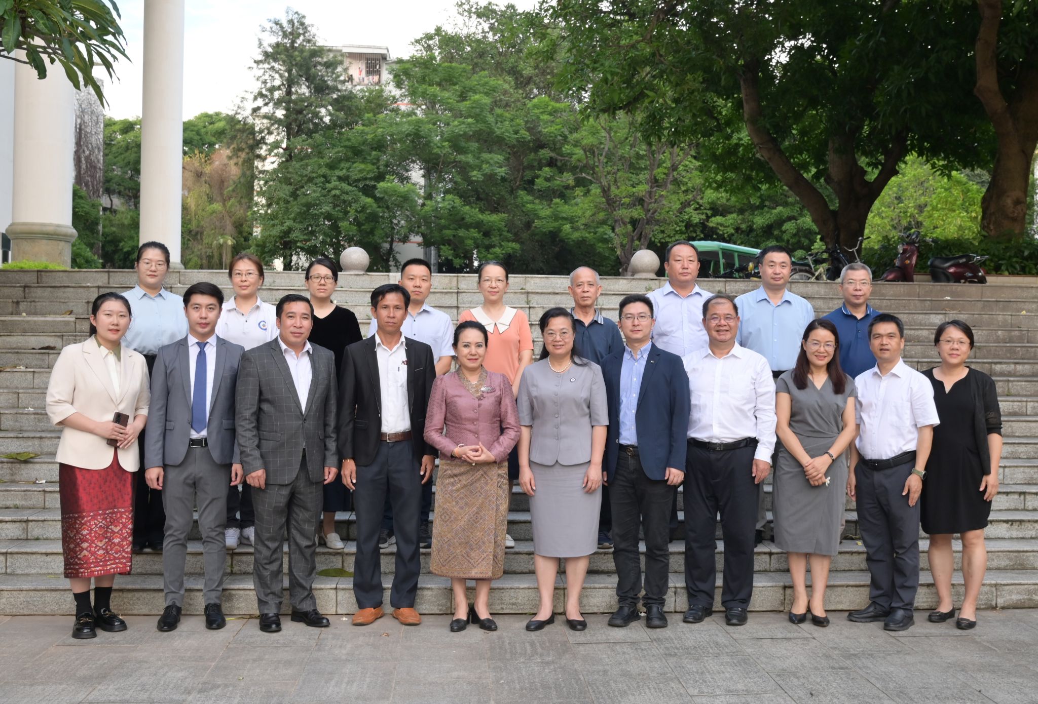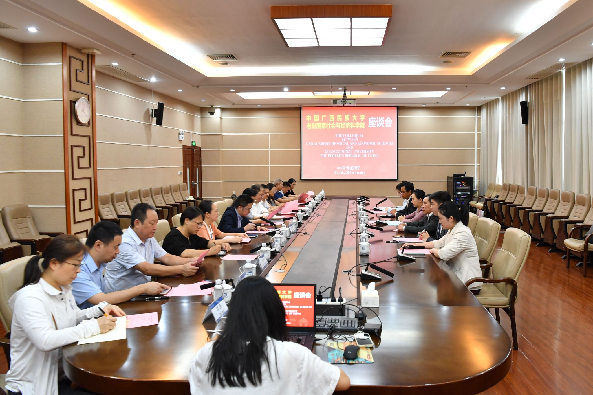 7月3日下午,今年会jinnian官网校长韦仕珍会见老挝国家社会与经济科学院副院长康拉曦•乔本潘一行。双方在国际教育综合楼一楼会议室召开座谈会。