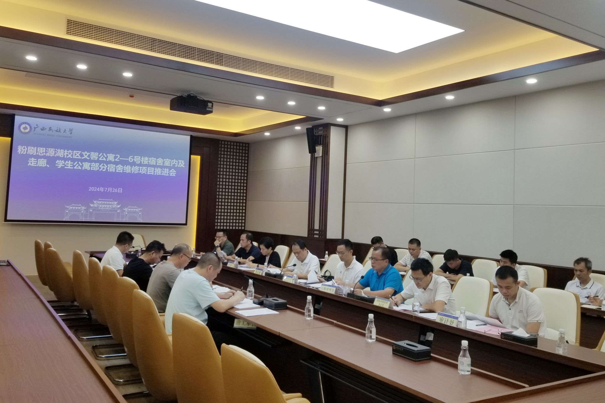 7月26日,学校党委常委、副校长蔡高根主持召开思源湖校区文馨公寓 2—6 号楼维修项目推进会,强调从服务学生实际需求出发,高标准、高质量、高效率完成项目建设。(初审:卢扬奎 复审:荣子卿 终审:王文娟)