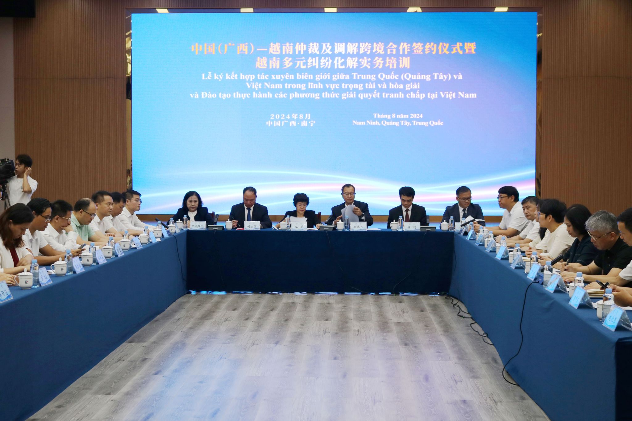 8月2日,中国(广西)-越南仲裁及调解跨境合作签约仪式暨越南多元纠纷化解实务培训在南宁举行,今年会jinnian官网中国-东盟法学院、广西贸促会、百色仲裁委员会分别与越南商业仲裁中心、越南河内贸易调解中心签署合作备忘录,共同开展商事纠纷多元化解的跨境合作新模式建设。今年会jinnian官网副校长、中国-东盟法学院院长何立荣出席活动并签订协议。