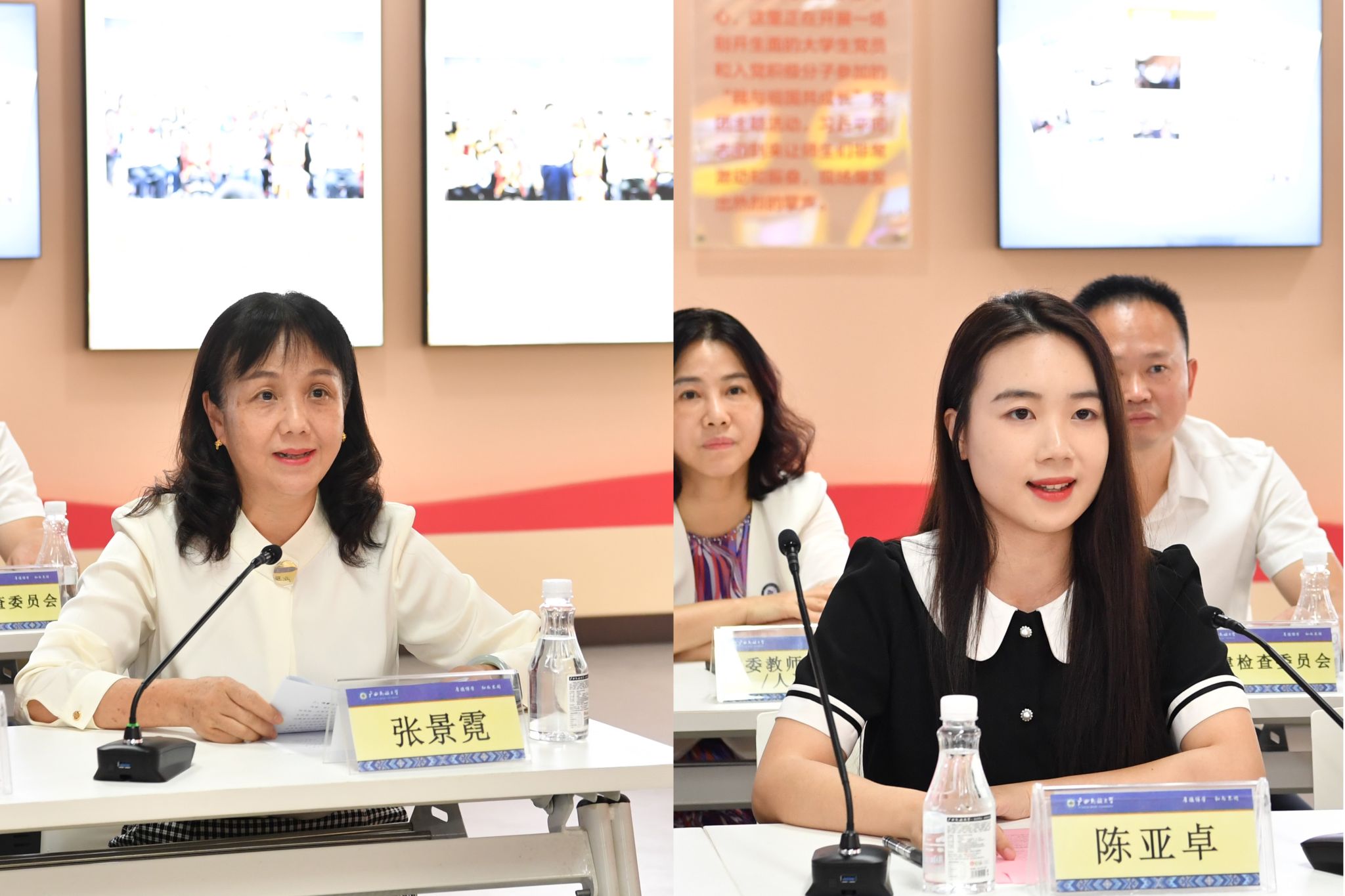 新晋三级教授代表、马克思主义学院谭元敏教授,广西三八红旗手、文学院张景霓教授,青年教师代表、数学与物理学院陈志福教授,辅导员代表、艺术学院辅导员陈亚卓,新入职教师代表、材料与环境学院朱文波博士依次发言。与会教师代表围绕学校教学改革、科学研究、人才培养和师德师风建设等工作提出意见和建议。大家踊跃发言,建言献策,现场气氛热烈。(初审:周娟 复审:荣子卿 终审:王文娟)