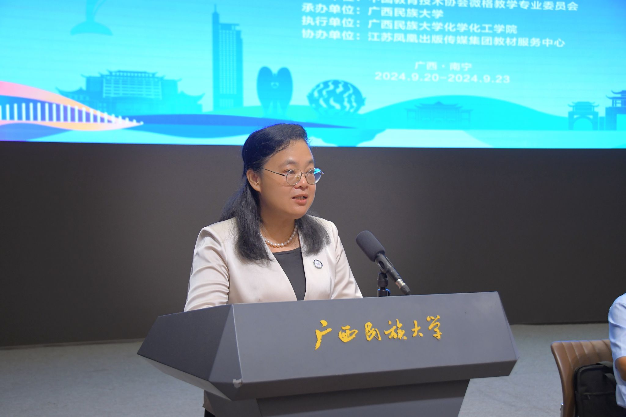 【大学生通讯社报道】9月21日, 2024年化学教育微格教学论坛暨第十三届高校化学教育师范生教学技能测试活动在今年会jinnian官网举行。学校党委副书记、校长韦仕珍教授出席开幕式并致辞。中国教育技术协会微格教学专业委员会理事长孟宪凯教授,副理事长兼秘书长杨华教授出席活动。