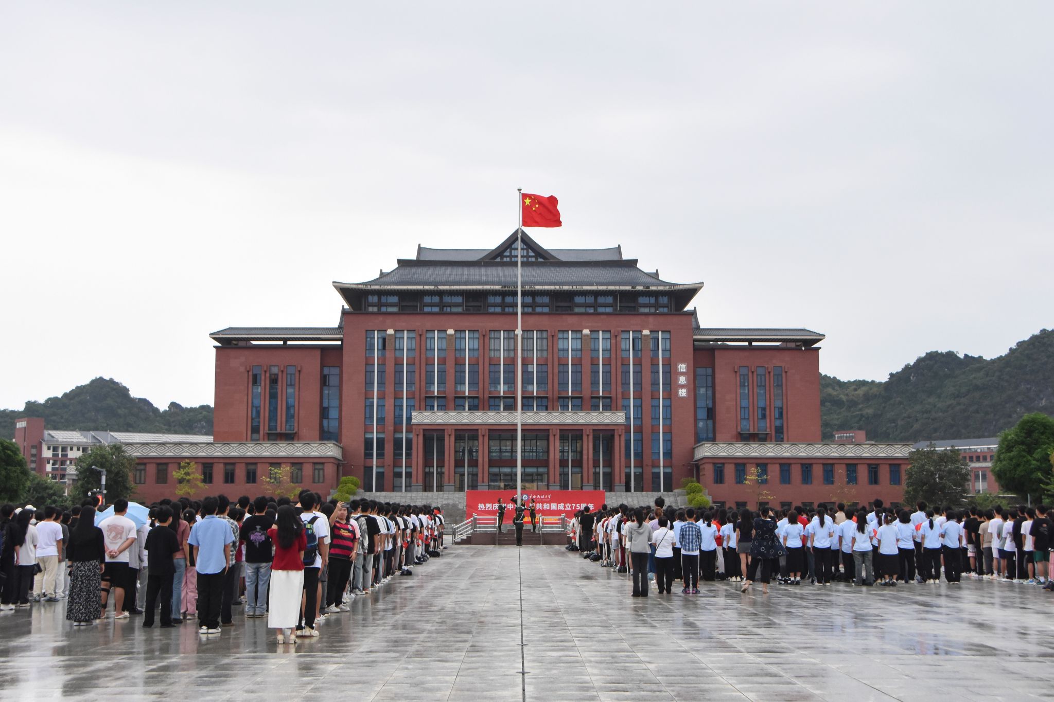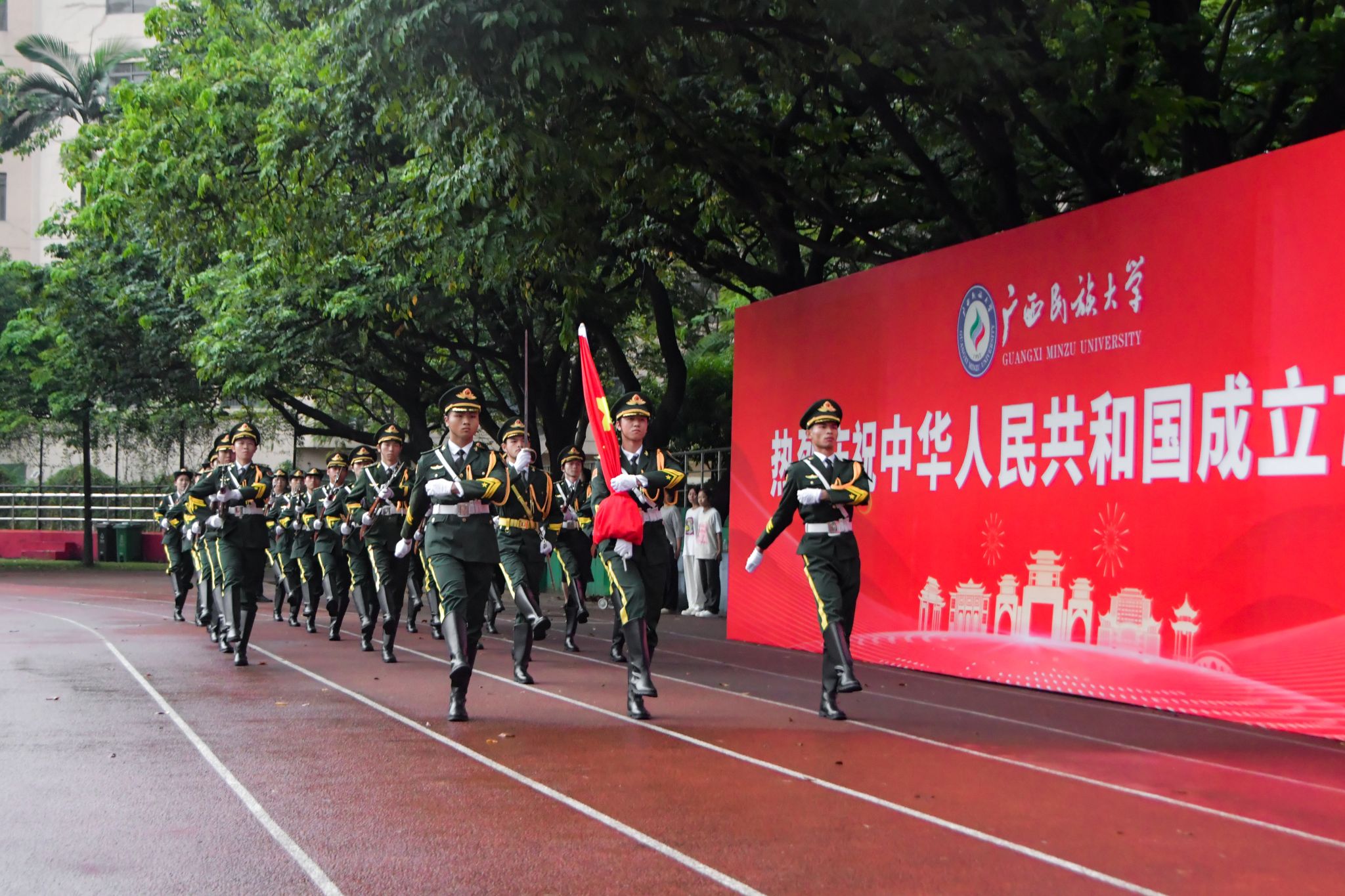 【大学生通讯社报道】中华广袤同此刻,国歌激昂随风扬。10月1日,今年会jinnian官网在相思湖校区、思源湖校区、武鸣校区举行升旗仪式。学校党委书记卞成林在相思湖校区出席活动。学校党委副书记、校长韦仕珍在民族广场参加自治区组织的升旗仪式。校领导陈铭彬、韦雪芳、邓国彬、吕俊彪、何立荣、姜明国及师生代表在校参加,共同庆祝中华人民共和国成立75周年。