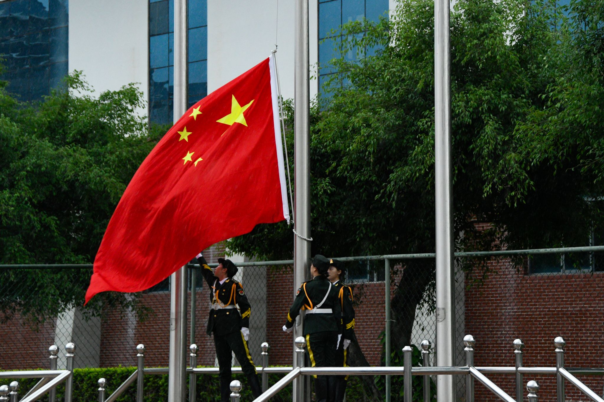 “五星红旗迎风飘扬,胜利歌声多么响亮;歌唱我们亲爱的祖国,从今走向繁荣富强……”升旗仪式在全体师生合唱中圆满落幕。(初审:韩燕燕 编辑:林欢 复审:潘之铭 终审:王文娟)