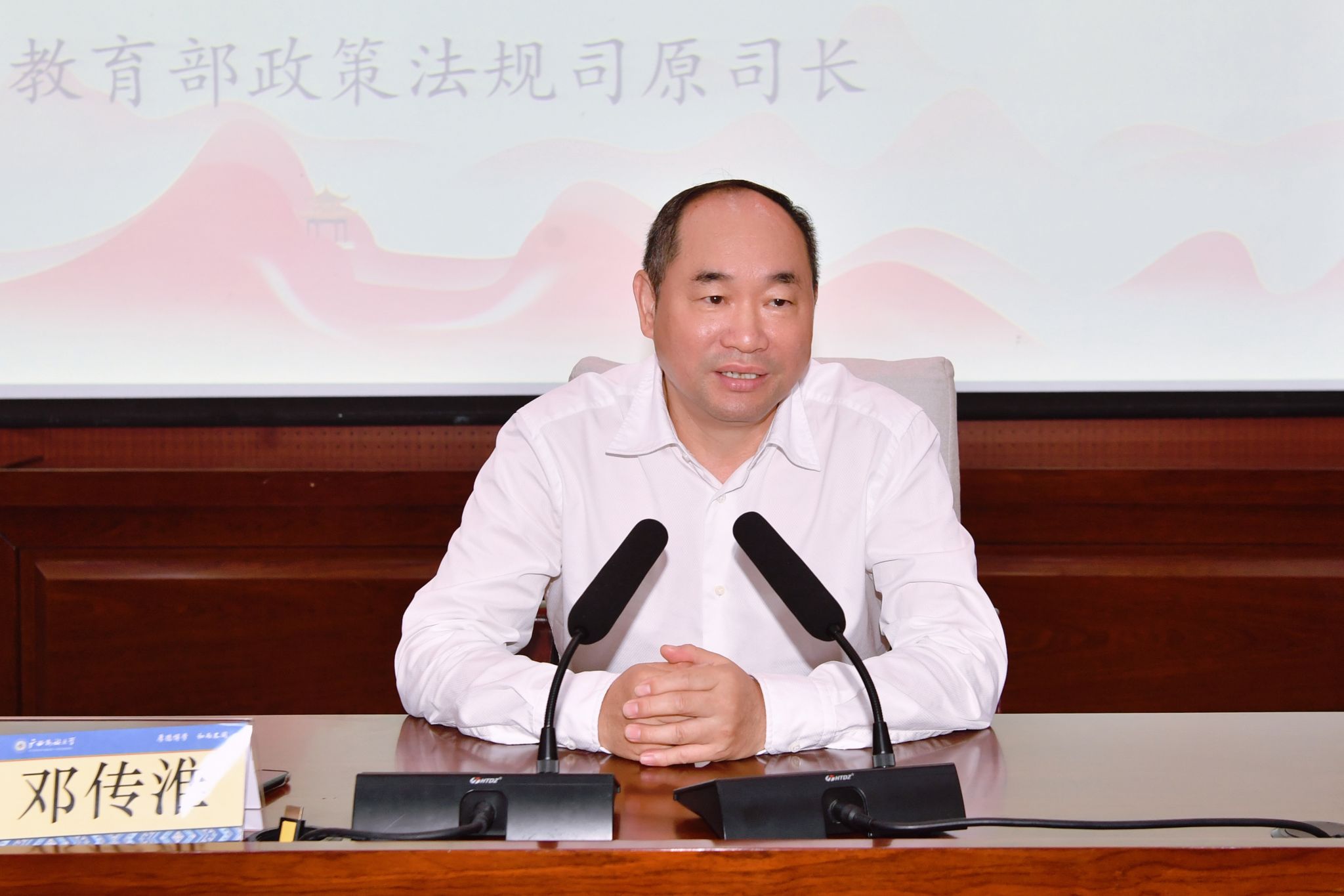 邓传淮应邀作“深入学习领会习近平总书记关于教育的重要论述,大力弘扬教育家精神”的专题报告,报告围绕习近平总书记提出的“九个坚持”、教育的根本问题、加快推进教育强国建设和弘扬践行教育家精神等做了深入的解读和阐释。报告过程中,邓传淮还结合自己的工作经历和人生阅历,谈了如何更好地为学、为事、为人的体会。