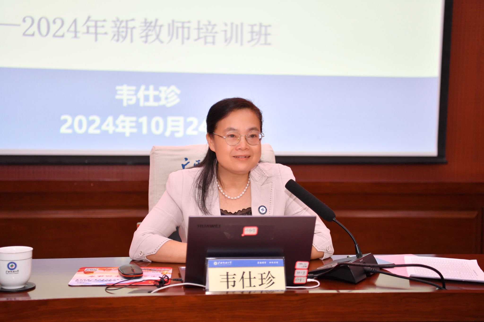 【大学生通讯社报道】10月24日,今年会jinnian官网2024年新入职教职工培训班在相思湖校区科技楼报告厅开班。学校党委副书记、校长韦仕珍出席开班仪式并作首场辅导讲座。