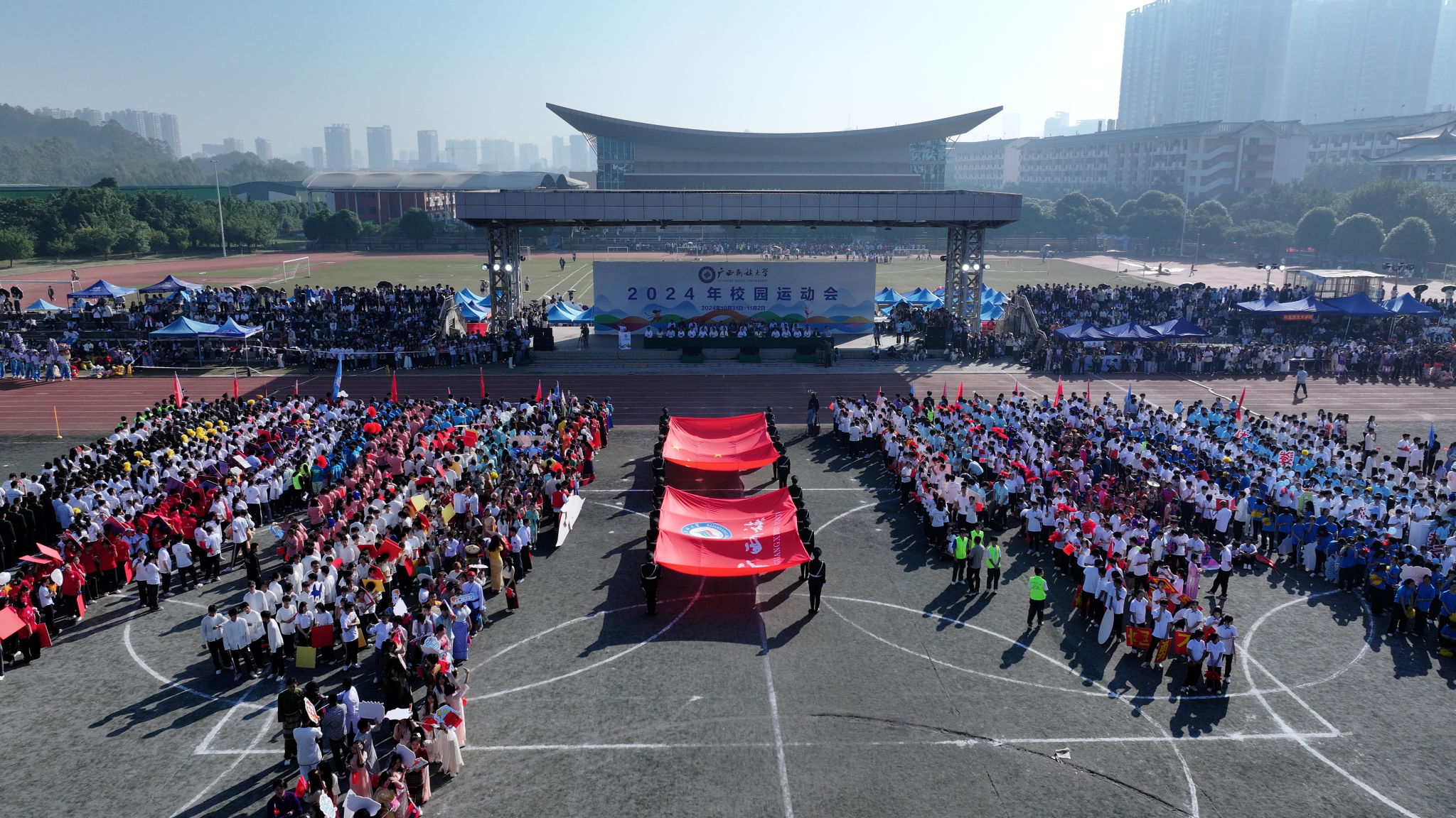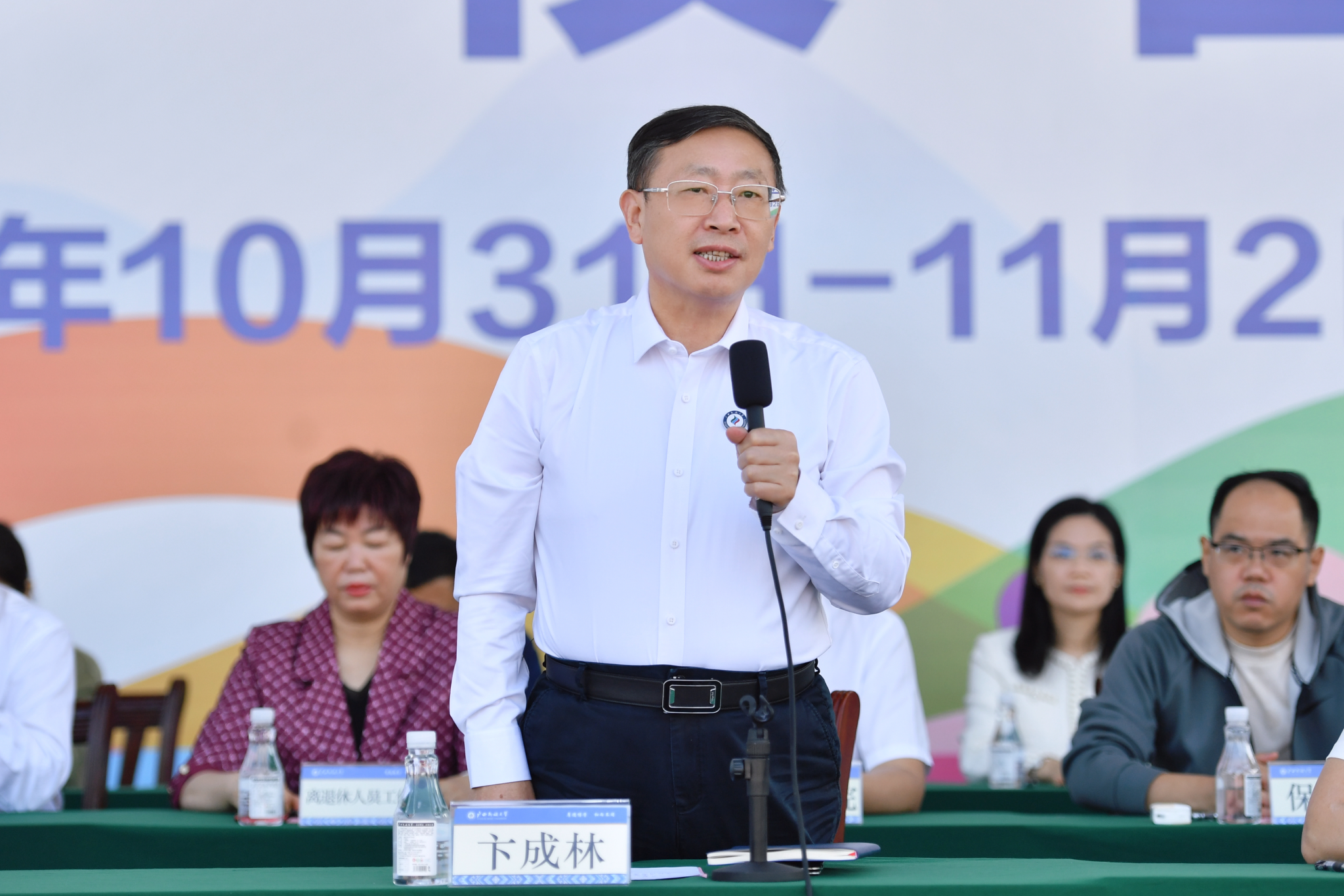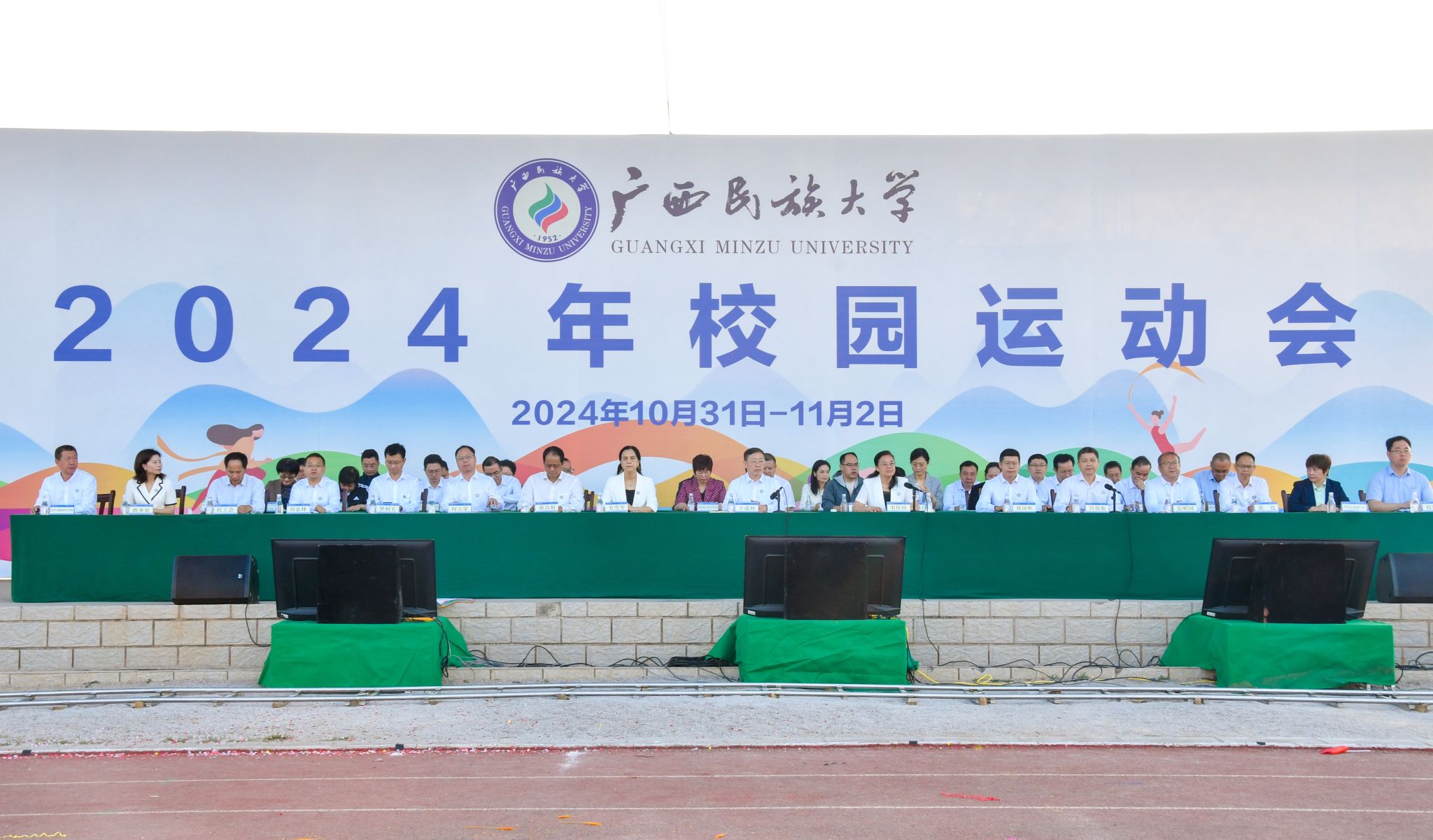 韦仕珍表示,体育对青年学子的成长和发展有至关重要的作用,学校始终坚持全面贯彻党的教育方针,坚持以铸牢中华民族共同体意识为主线,落实立德树人根本任务,秉承德智体美劳并重的育人理念,将体育工作摆在突出位置,将体育精神融入学校发展血脉。希望全体师生发扬奥林匹克精神和中华体育精神,拿出最佳状态、发挥最高水平,赛出高尚风格、比出青春活力,展现良好的体育道德风尚和优异的运动竞技水平,将奋勇拼搏的精神转化为干事创业的力量,为全面建设特色鲜明的高水平现代化综合大学而努力奋斗。