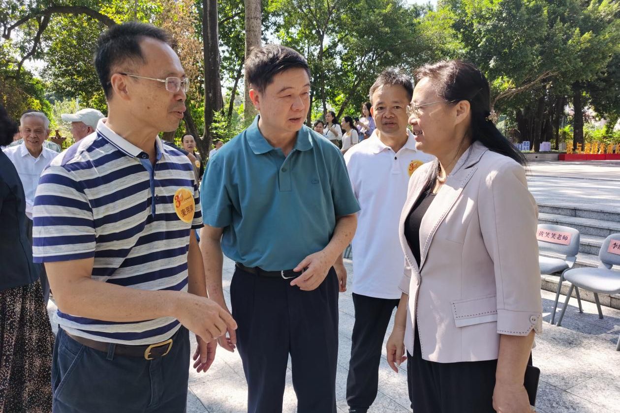 汉语言文学专业1990级2班校友们重游阔别已久的校园。熟悉的一草一木、一砖一瓦,都勾起了他们心底深处那段最为珍贵的青春记忆。校园里,古树依然枝繁叶茂;相思湖畔,情意更浓。