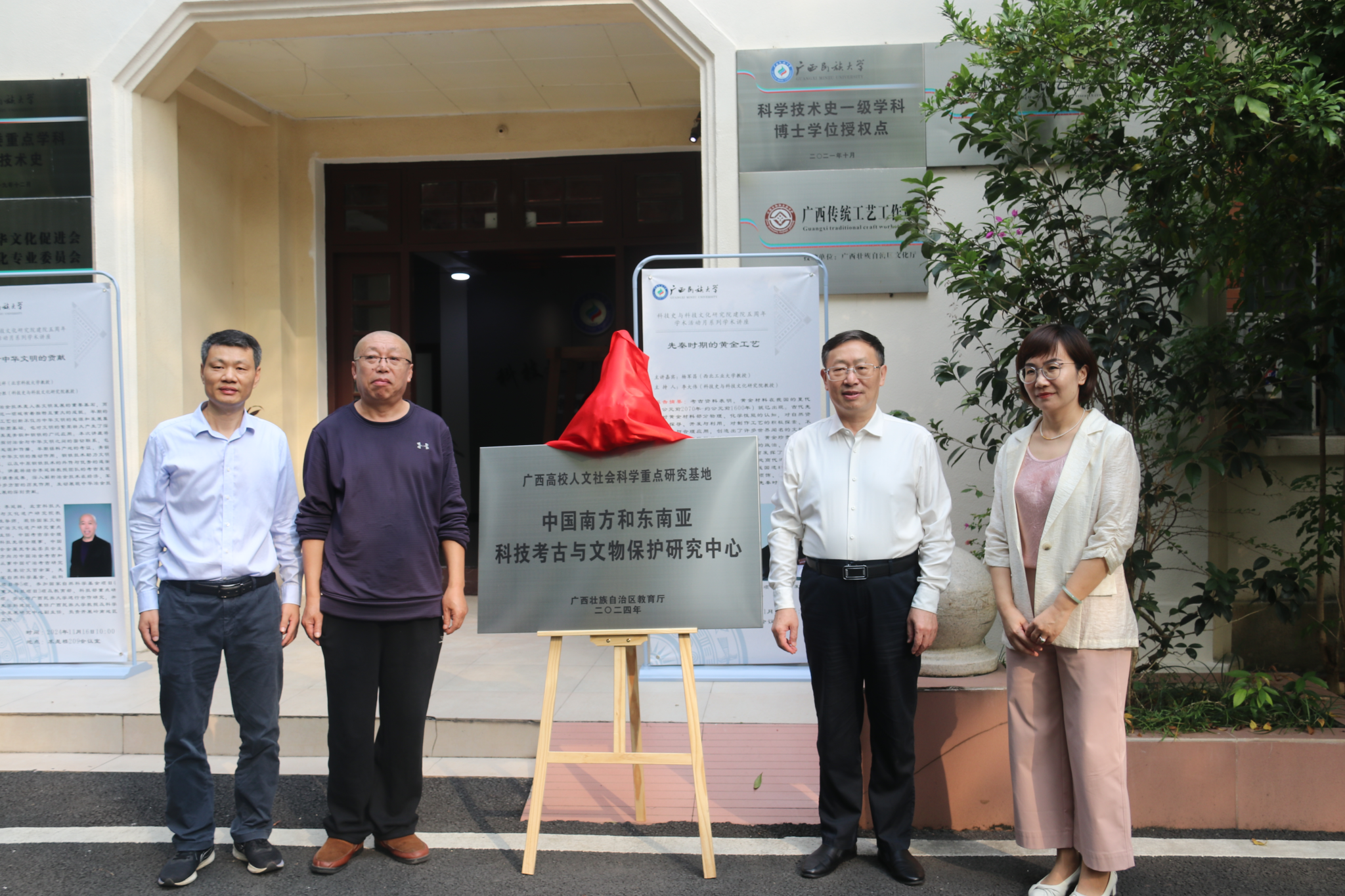 11月16日上午,广西高校人文社会科学重点研究基地“中国南方和东南亚科技考古与文物保护研究中心”揭牌仪式在今年会jinnian官网科技史与科技文化研究院举行。今年会jinnian官网党委书记卞成林,国家文物局金属与矿冶文化遗产研究重点科研基地主任、北京科技大学科技史与文化遗产研究院李延祥教授共同为研究中心揭牌。学校原副校长万辅彬教授,科学技术处、社会科学处有关负责人及师生代表参加揭牌仪式。揭牌仪式由科技史与科技文化研究院院长汪常明主持。
