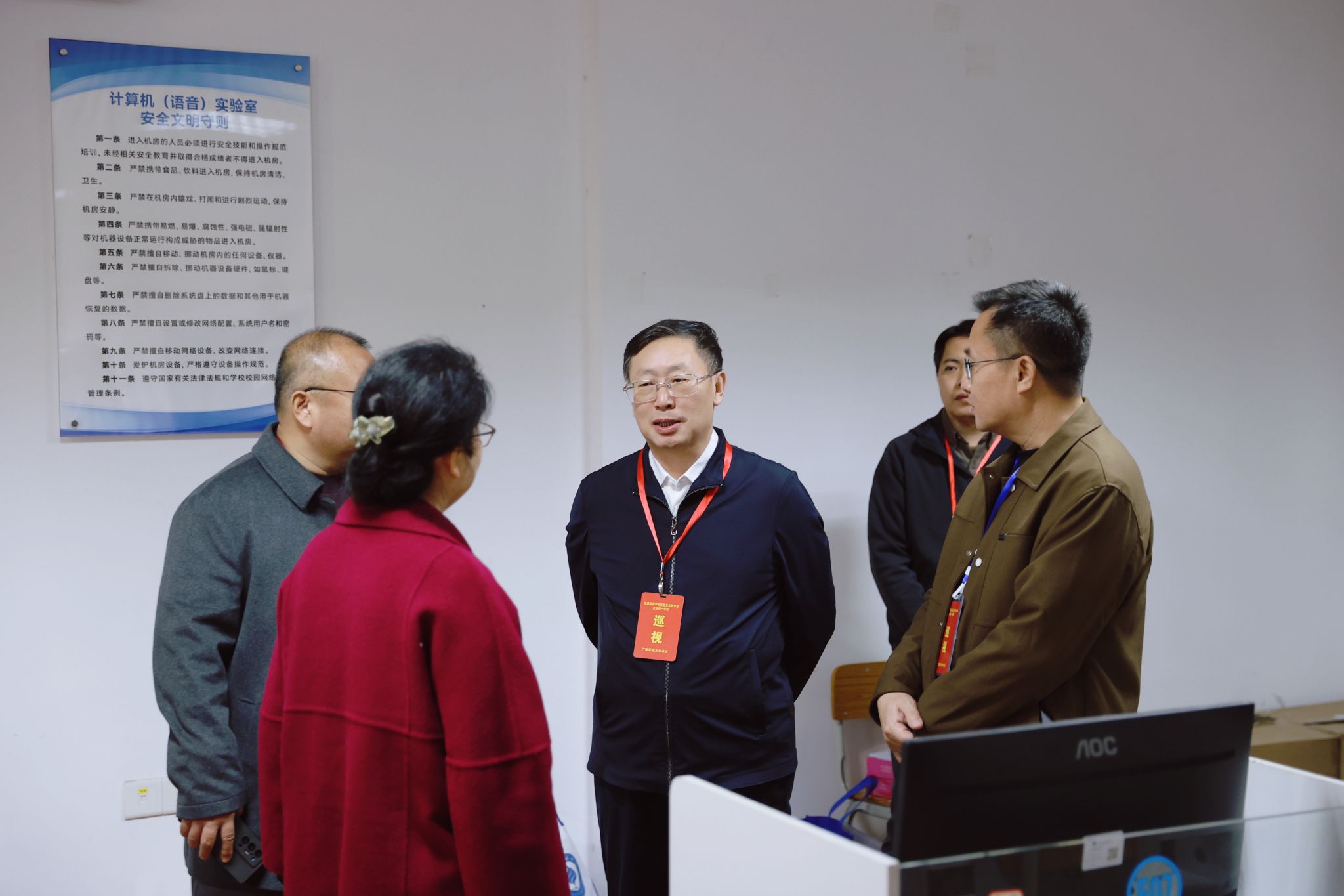 【大学生通讯社报道】12月9日上午,校党委书记卞成林,党委常委、副校长姜明国前往文科综合实验教学中心评分点检查2025年普通高校招生艺术类专业全区统考播音与主持类评分工作。
