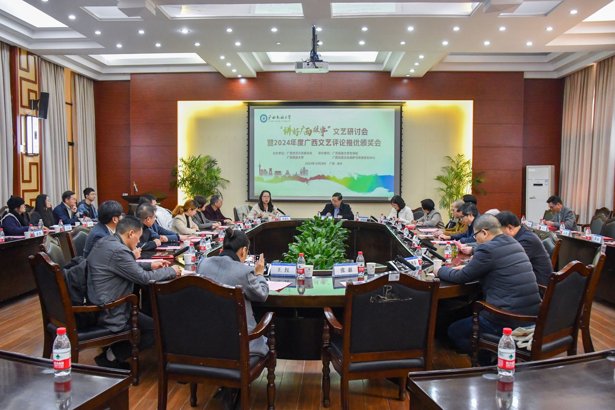 12月29日,黄晓娟在“讲好广西故事”文艺研讨会暨2024年度广西文艺评论推优颁奖会上表示,学校贯彻理论研究与创作实践相结合的文学通识教育理念,持续加强中国语言文学学科建设,推动文艺评论发展。希望文艺评论界专家学者凝聚强大精神动力,讲好广西故事。(初审/陆晓芹 复审/荣子卿 终审/孙寿媚)