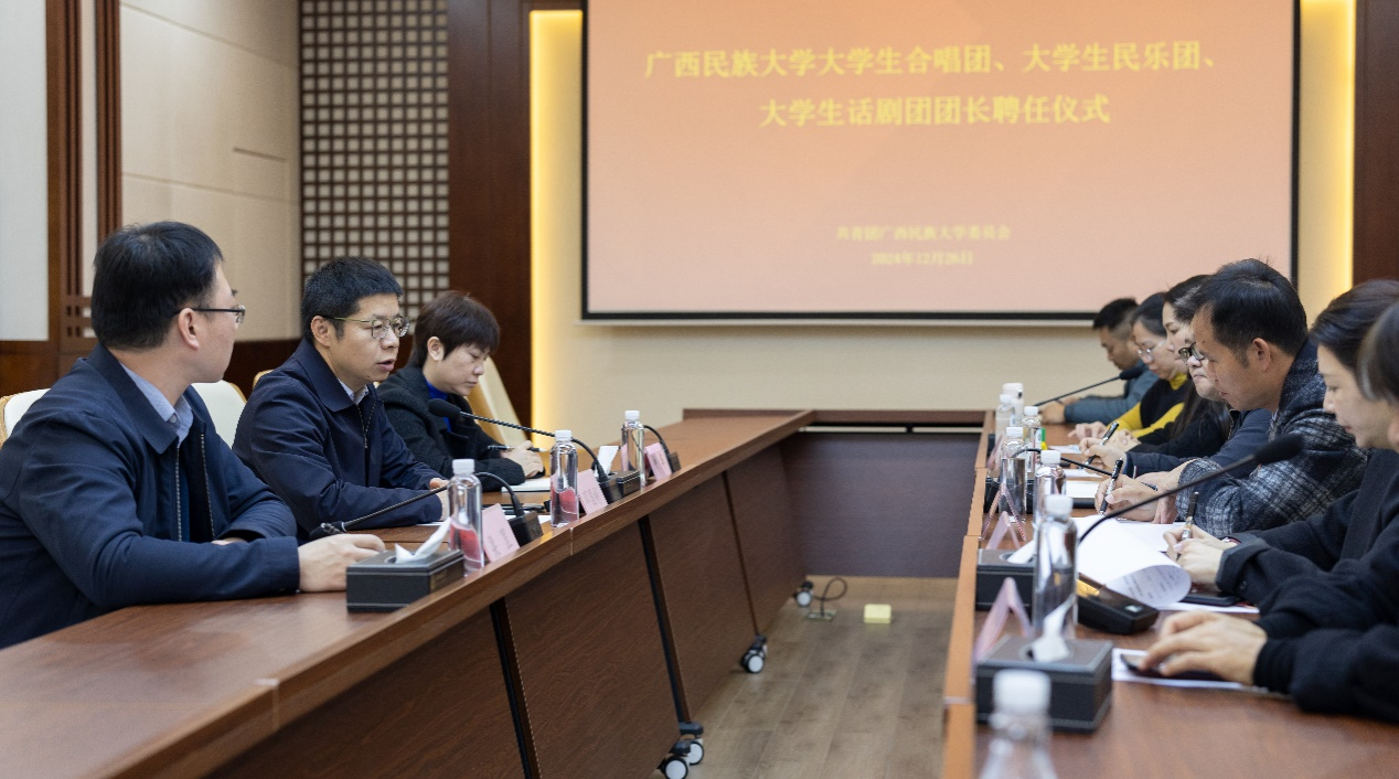 12月26日,学校党委副书记邓国彬在学校大学生合唱团、民乐团、话剧团团长聘任仪式上强调,“三团”建设符合学校办学定位需求,要充分挖掘校内资源,扎实推进美育工作,吸引更多学子投身艺术怀抱,在艺术滋养中提升综合素质,为校园文化繁荣发展贡献力量。(初审/肖耀科 复审/荣子卿 终审/孙寿媚)