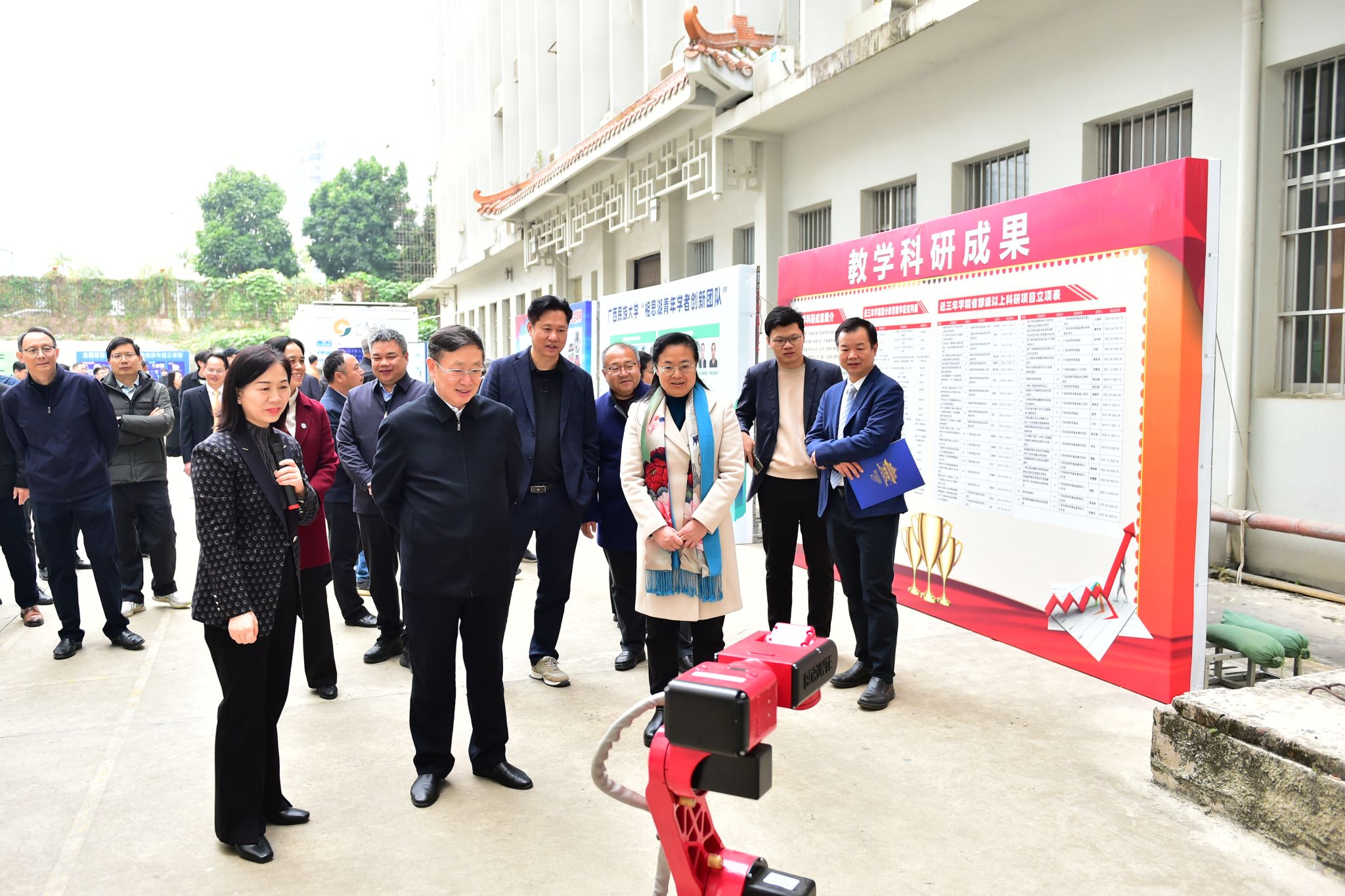 揭牌仪式后,与会人员共同参观物理与电子信息学院教学科研成果展。(初审:罗丽平 复审:潘之铭 终审:孙寿媚)