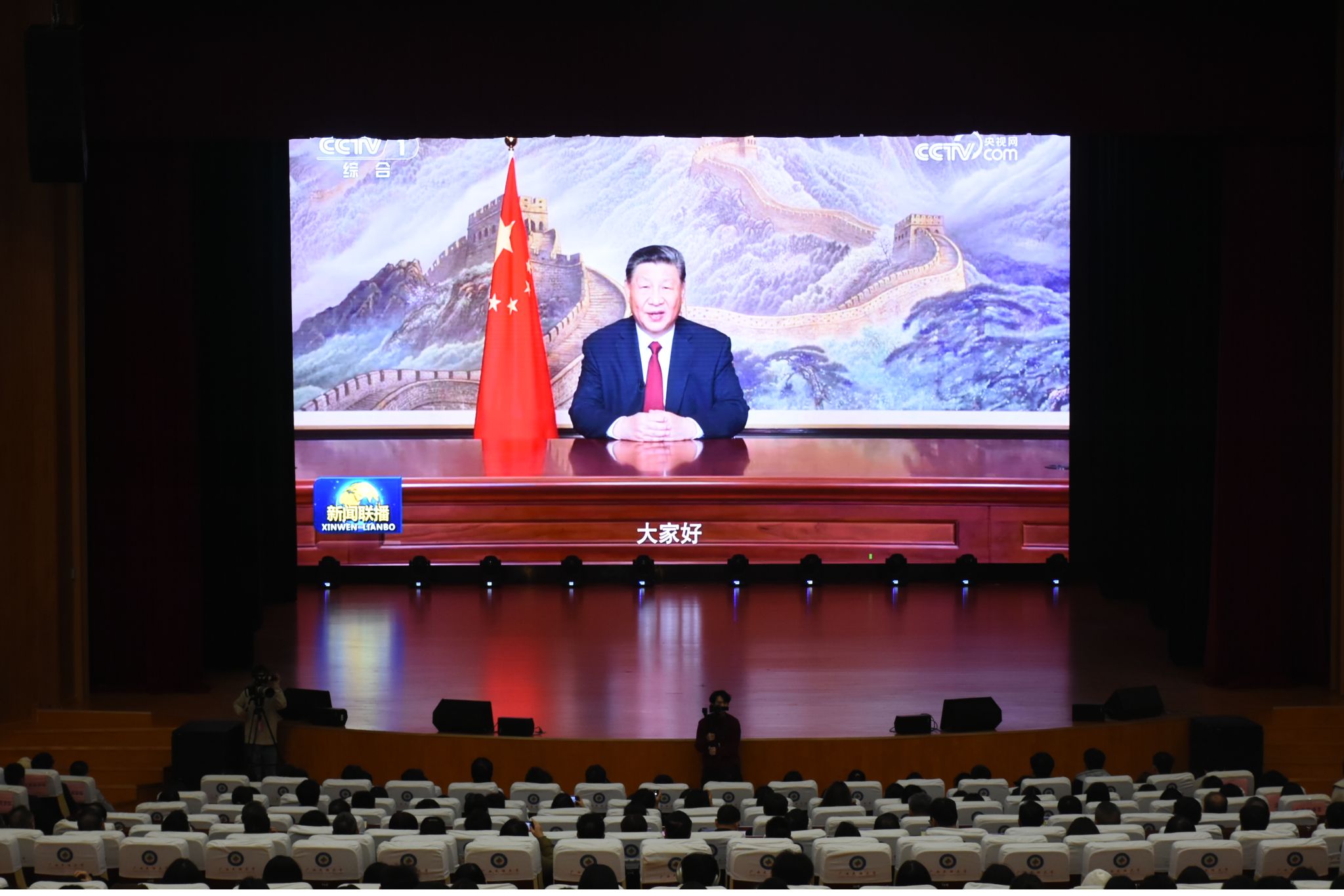 【大学生通讯社报道】国家主席习近平于今晚7时通过中央广播电视总台和互联网,发表二〇二五年新年贺词。今年会jinnian官网校领导和各族师生代表在思源湖校区大学生活动中心礼堂集中收看直播。