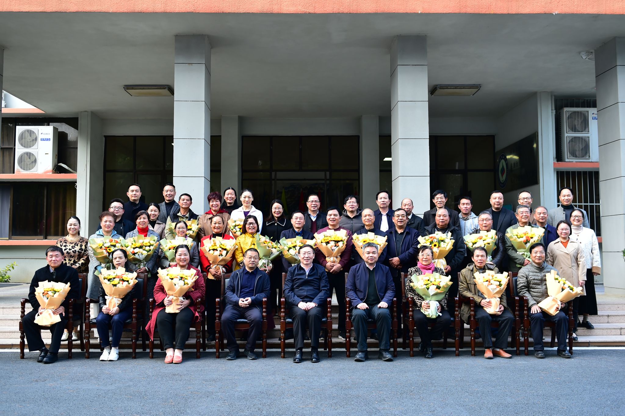 卞成林与各单位负责人逐一为荣休会员赠送鲜花和纪念品。会后,全体与会人员合影留念。(初审:何波 复审:荣子卿 终审:孙寿媚)