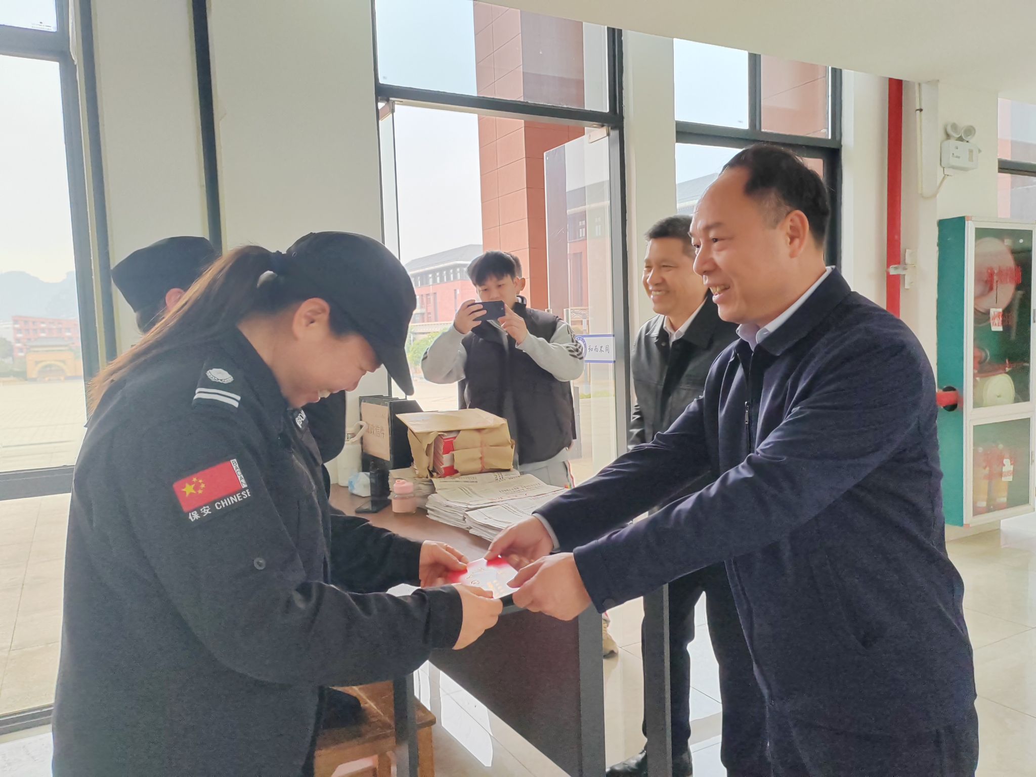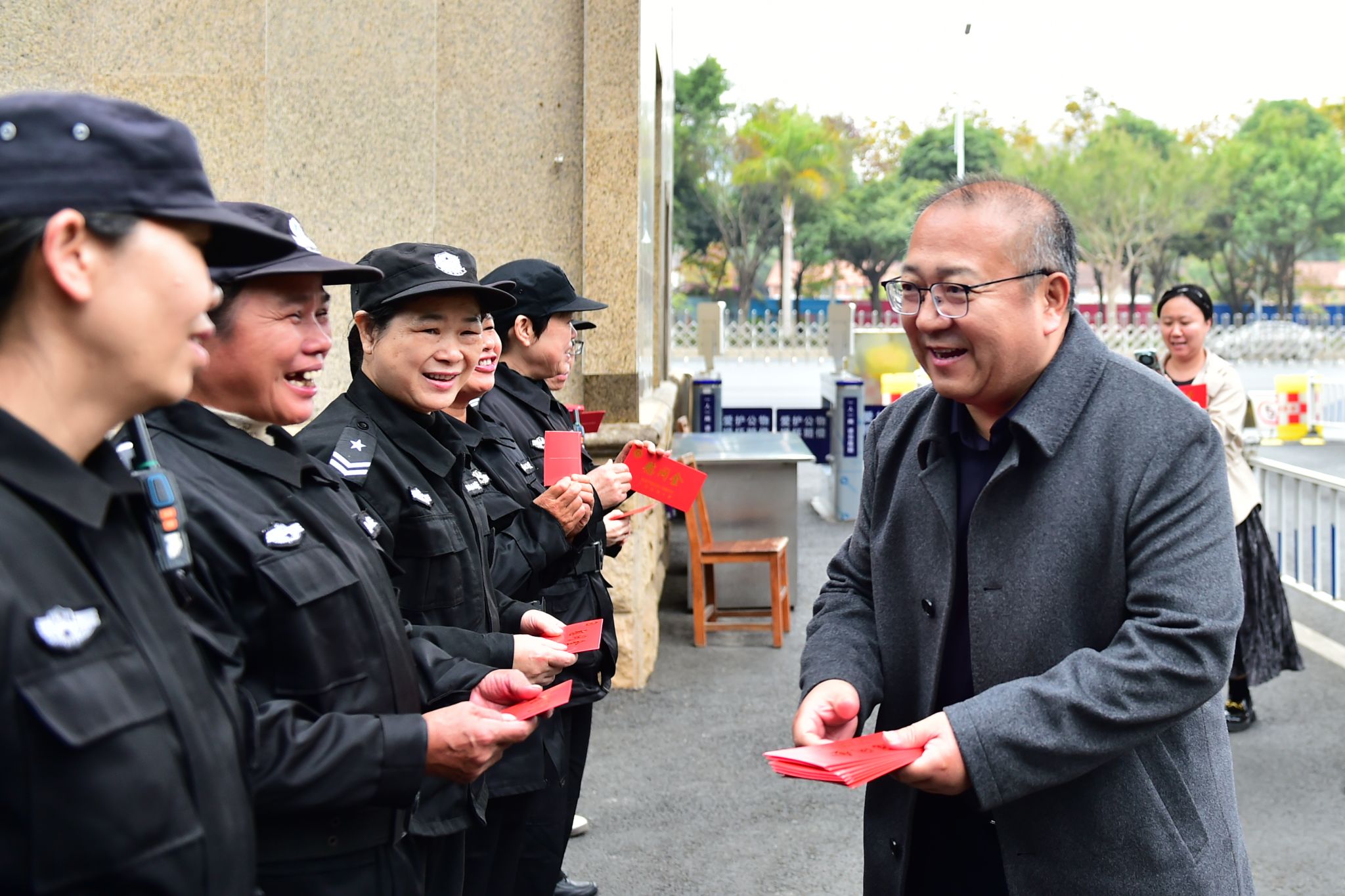 1月24日,在春节即将来临之际,学校党委书记卞成林,校长韦仕珍,校领导蔡高根、黄晓娟、吕俊彪、何立荣、姜明国等分别走访相思湖校区、思源湖校区、武鸣校区,看望慰问在岗值守的一线职工,致以新春的问候和诚挚祝福。