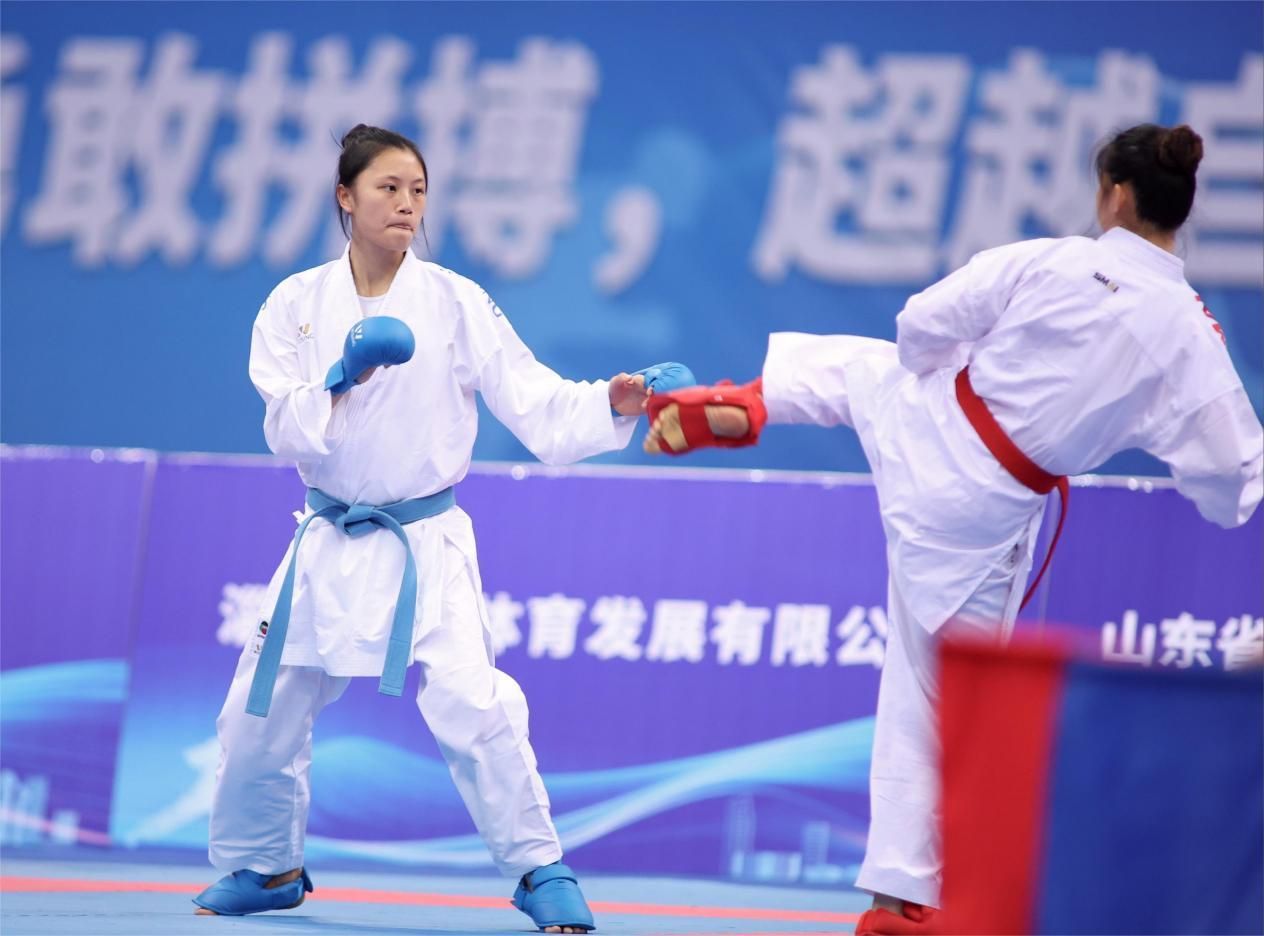 最终按照三局两胜的赛制,广西队以总比分2:0战胜对手,第一次在全国空手道锦标赛中获得女子团体组手冠军。