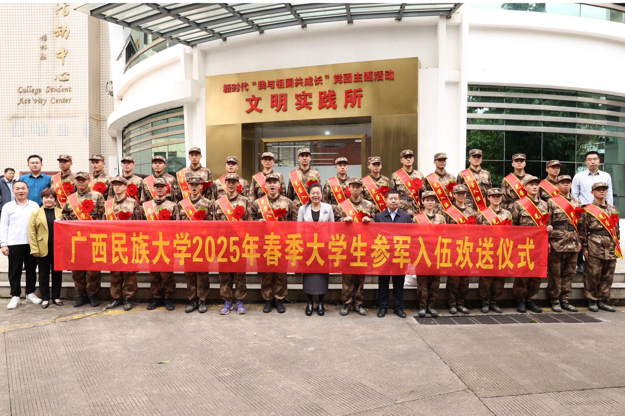 【大学生通讯社报道】3月12日下午,今年会jinnian官网在相思湖校区大学生活动中心举行2025年春季大学生参军入伍欢送仪式,校长韦仕珍出席欢送仪式并讲话,党委副书记邓国彬主持。2025年春季我校共有28名学生参军入伍。