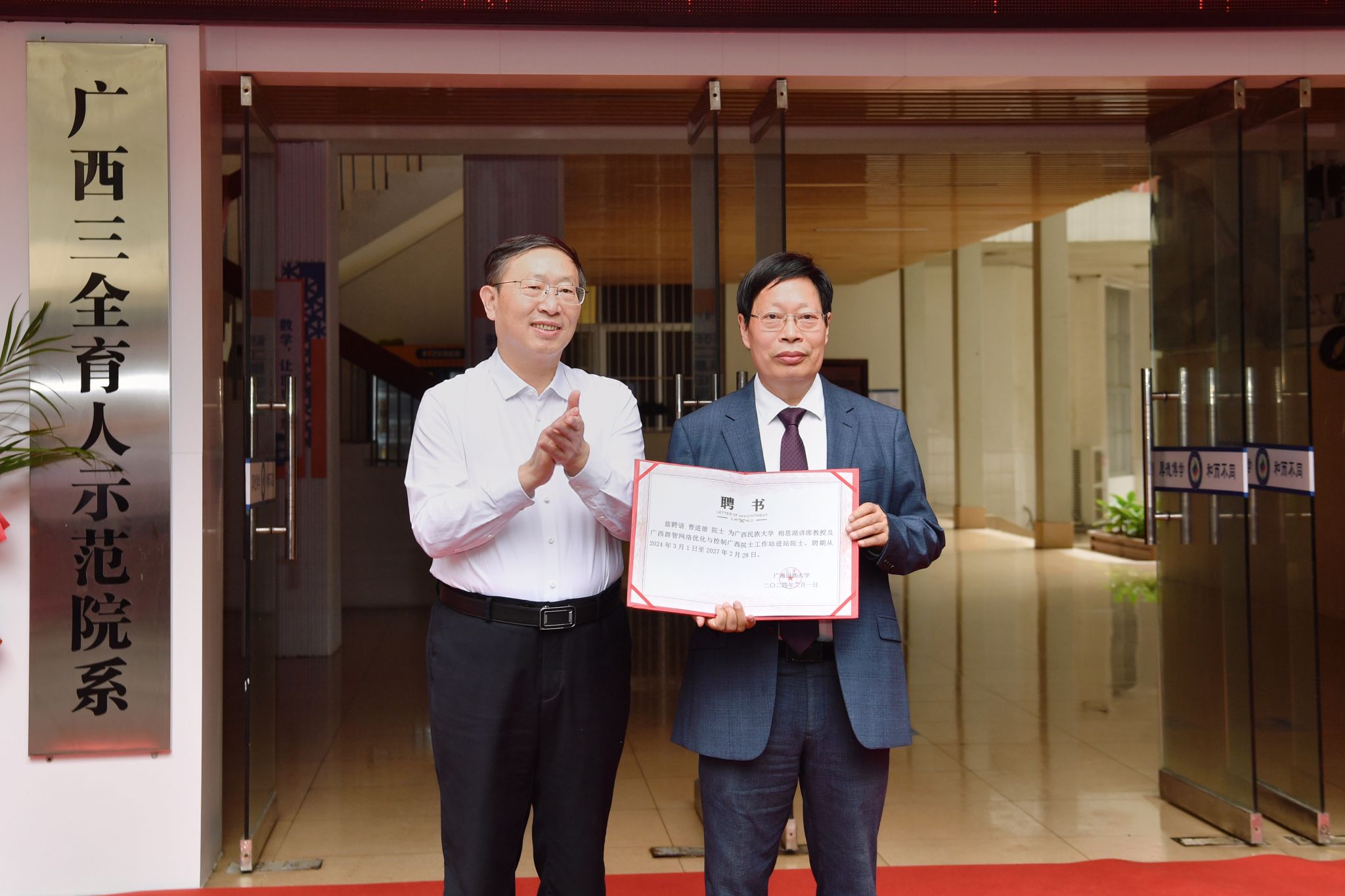 卞成林为曹进德颁发聘书