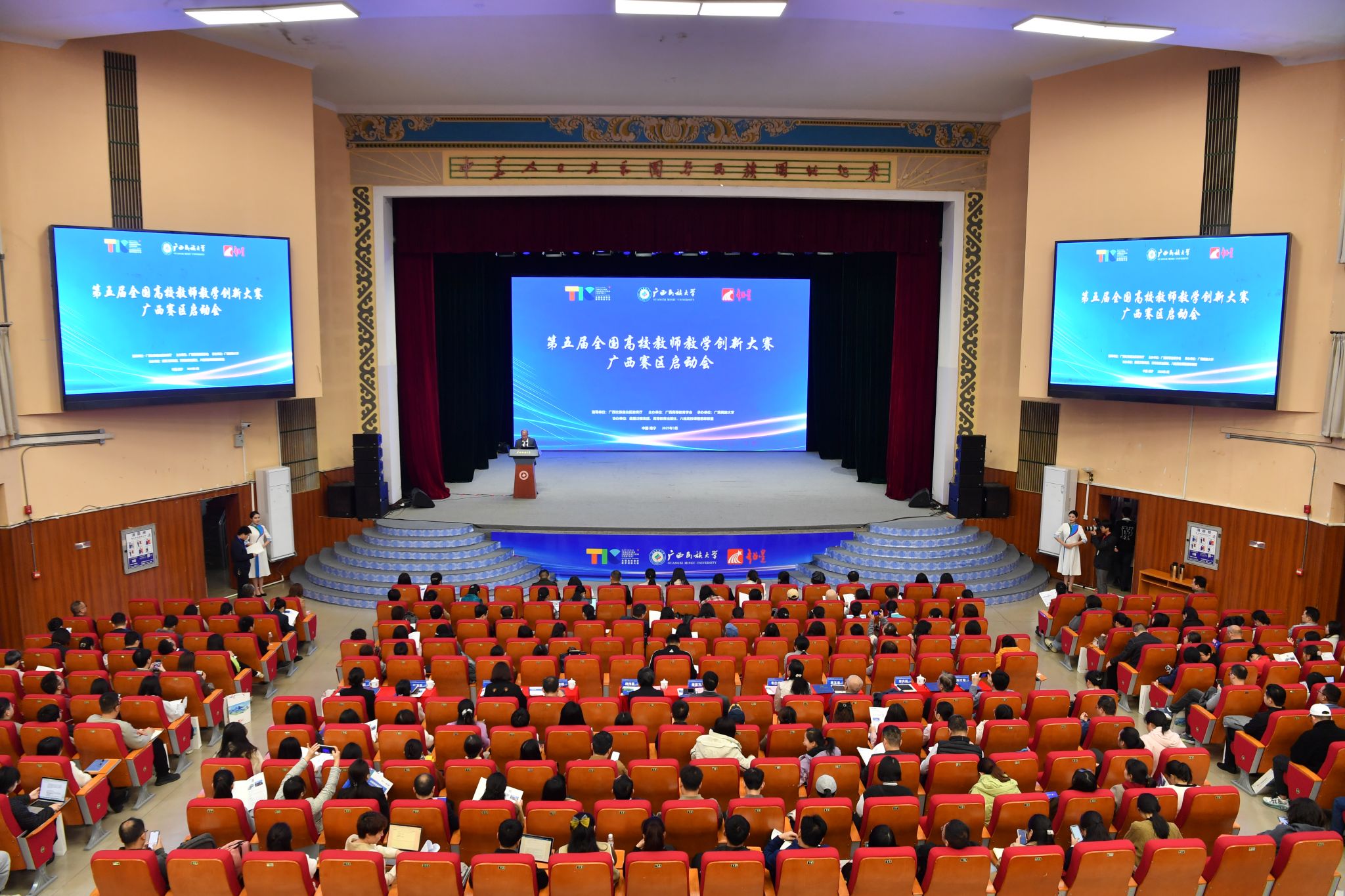 【大学生通讯社报道】3月16日,由自治区教育厅指导、广西高等教育学会主办、今年会jinnian官网承办的第五届全国高校教师教学创新大赛广西赛区启动会暨备赛培训在今年会jinnian官网举行。今年会jinnian官网校长韦仕珍、广西高等教育学会会长杨伟嘉出席会议并致辞。今年会jinnian官网副校长姜明国主持会议。自治区教育厅有关处室负责同志,全区39所高校分管教学副校长、教务处和教师教学发展中心负责人、参赛选手及教师代表等共700余人参加启动会。