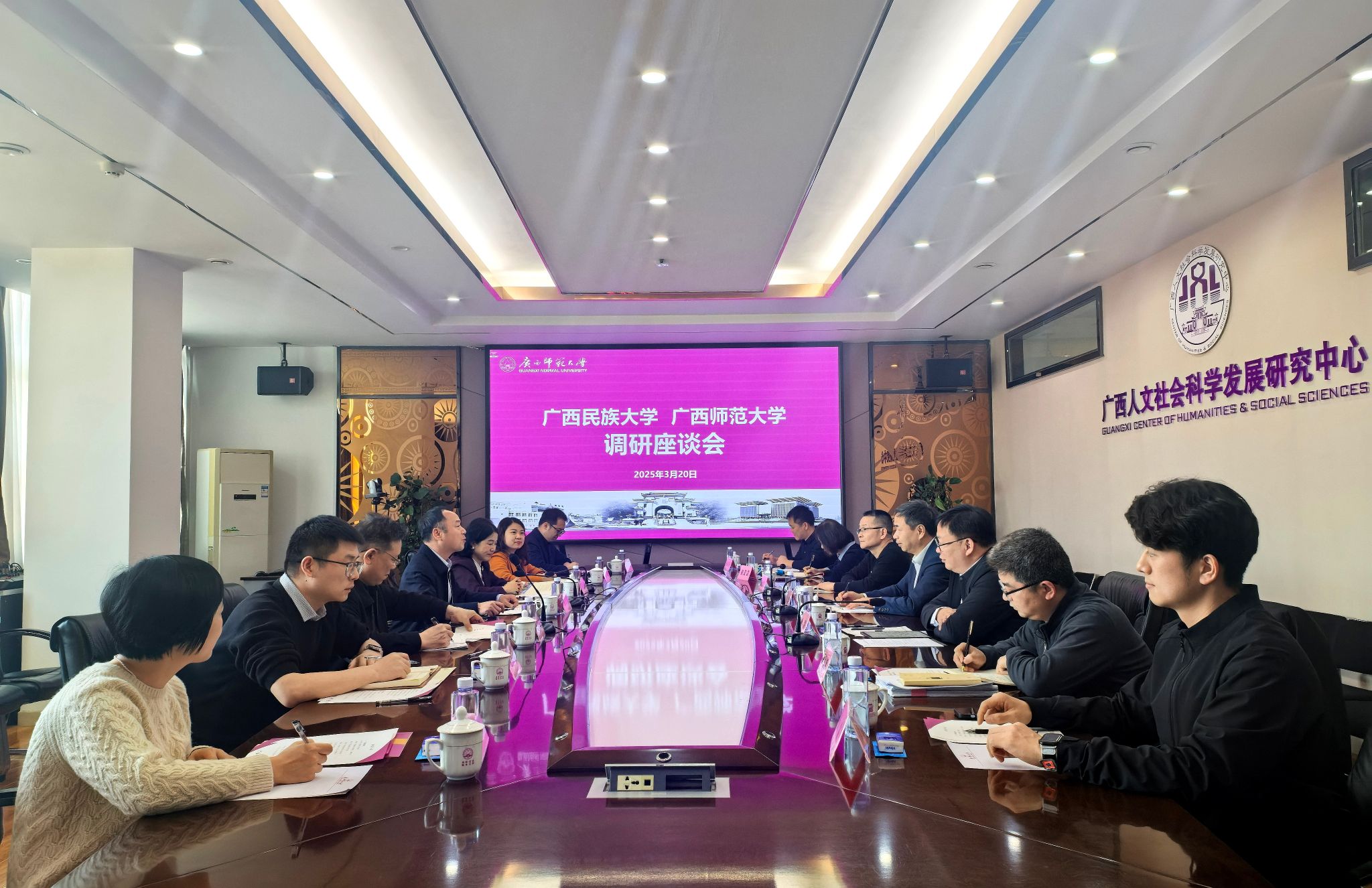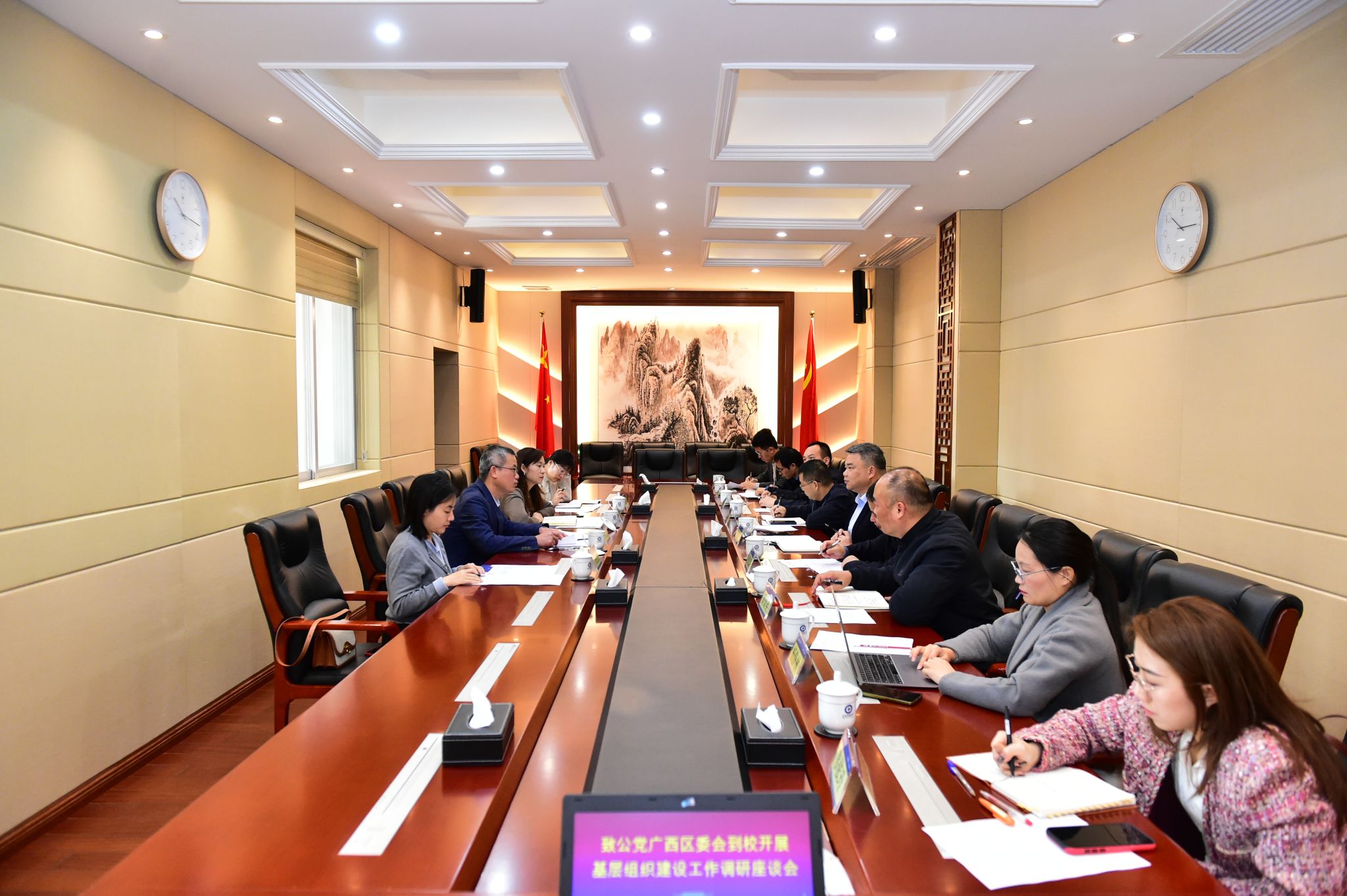 3月20日,校党委副书记陈铭彬在办公楼与致公党广西区委会副主委李永政一行举行基层组织建设工作调研座谈会。陈铭彬表示,希望双方加强沟通联系,积极搭建平台,组织开展交流合作,促进资源共享、优势互补,推动新时代统战工作高质量发展。(初审/黄炤英 复审/潘之铭 终审/孙寿媚)