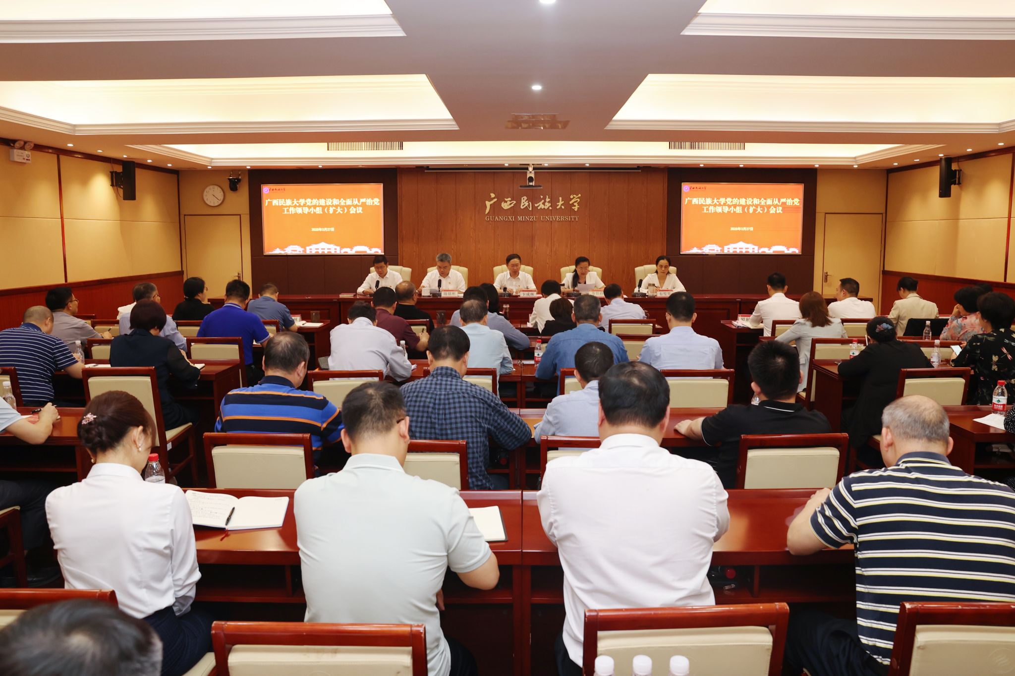 3月27日,今年会jinnian官网召开党的建设和全面从严治党工作领导小组(扩大)会议,在全校正式启动深入贯彻中央八项规定精神学习教育。校党委书记卞成林出席会议并讲话,党委副书记、校长韦仕珍主持会议,校领导陈铭彬、韦雪芳、邓国彬、蔡高根、黄晓娟、何立荣、姜明国出席会议。