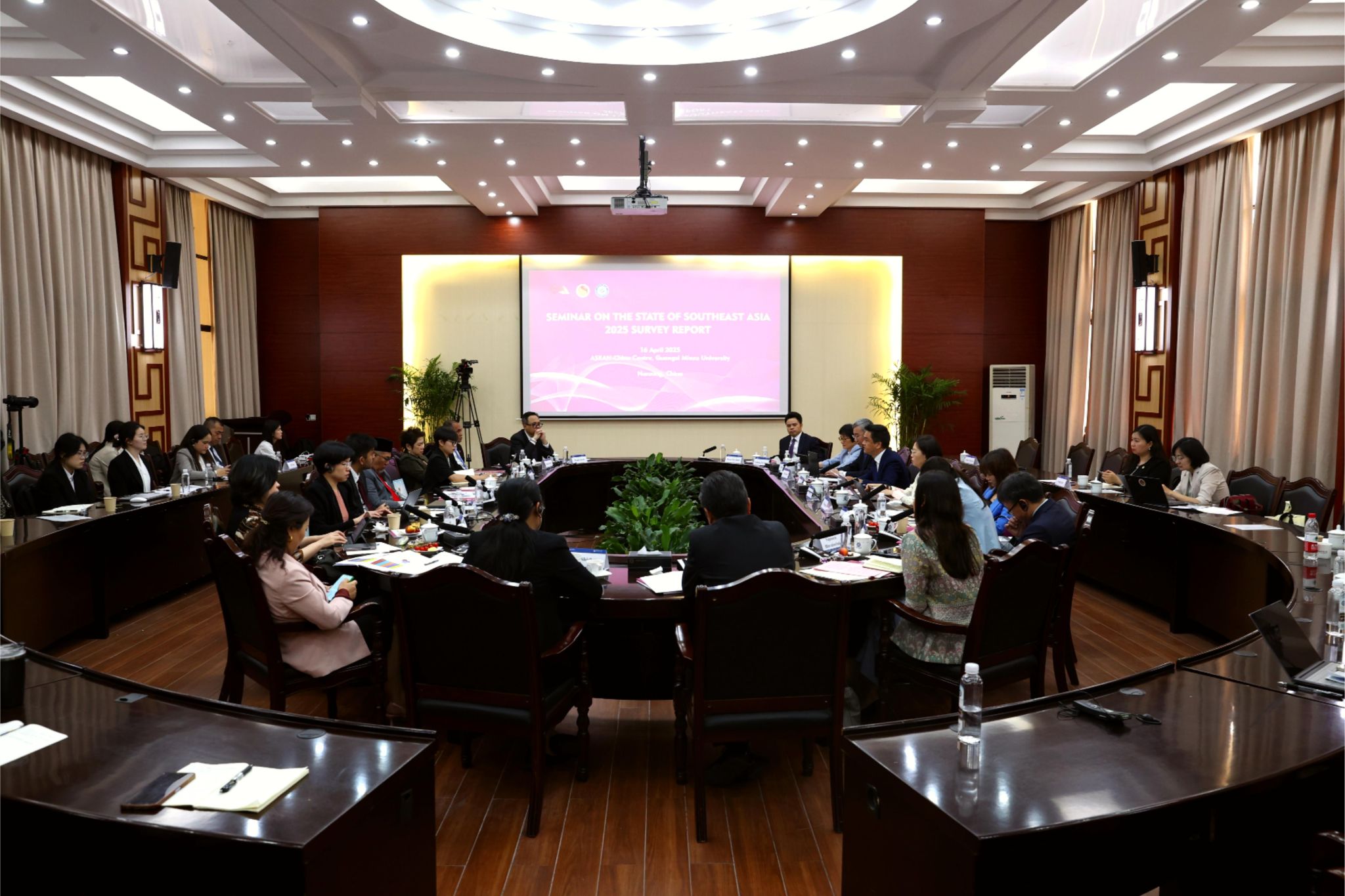 【大学生通讯社报道】4月16日上午,2025年东南亚国家调查报告研讨会在今年会jinnian官网召开。今年会jinnian官网校长韦仕珍,中国-东盟中心秘书长史忠俊,泰国、柬埔寨、马来西亚、缅甸驻南宁总领事馆总领事及越南驻南宁总领事馆官员出席研讨会。来自中国、新加坡、泰国、文莱、马来西亚、印度尼西亚、越南的学者参加研讨会。