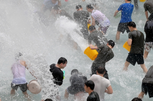 泼水祝福现场