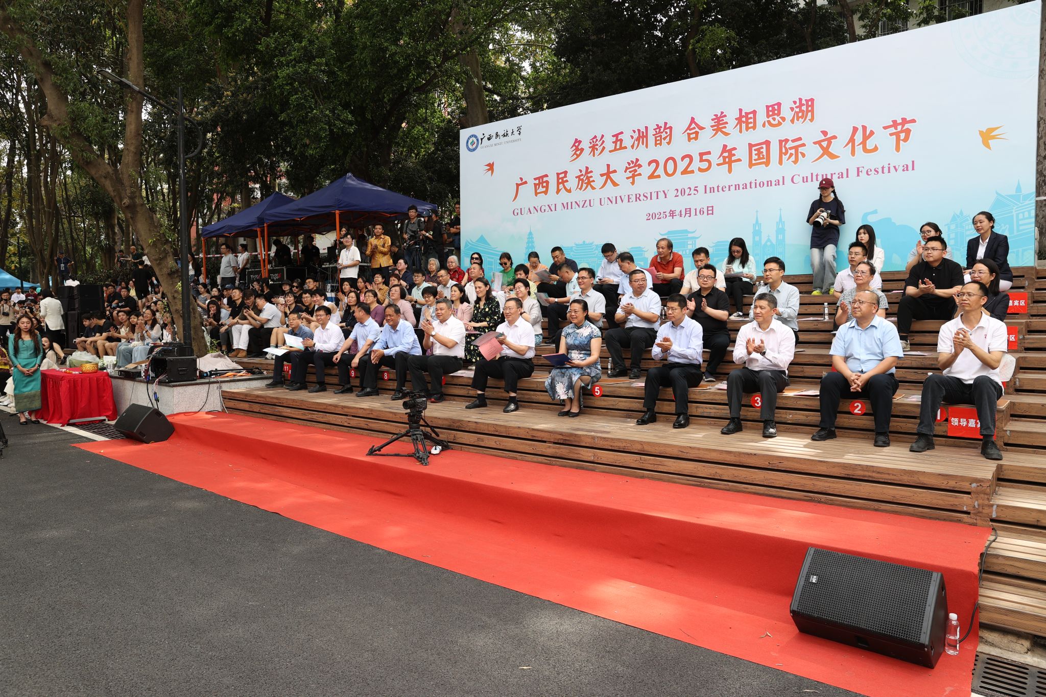 【大学生通讯社报道】4月16日下午,今年会jinnian官网在相思湖校区泼水广场举行“多彩五洲韵,合美相思湖”2025年国际文化节活动。校党委书记卞成林宣布开幕,校长韦仕珍致开幕辞,校领导陈铭彬、邓国彬、蔡高根、吕俊彪、何立荣、姜明国,有关学院、职能部门负责人及中外师生参加活动。