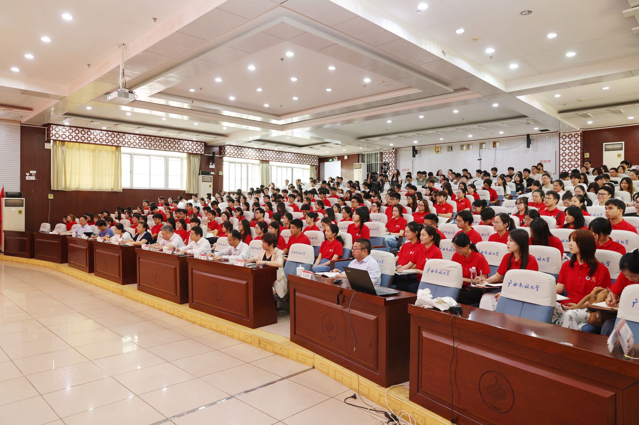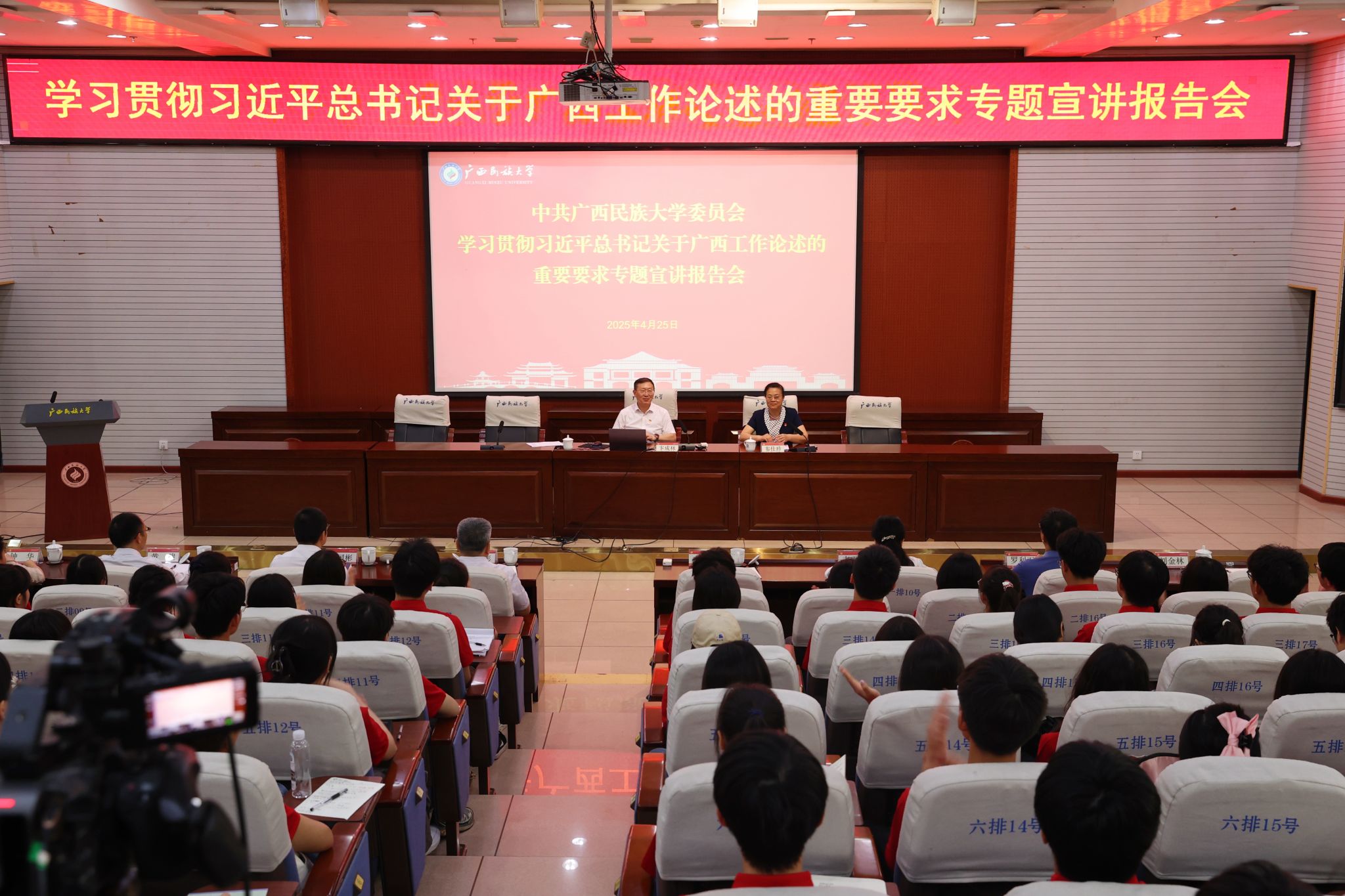 【大学生通讯社报道】为深入学习宣传贯彻习近平总书记关于广西工作论述的重要要求,铸牢中华民族共同体意识,推动党的创新理论有效触达青年群体,根据自治区党委宣传部《理论宣讲青年群体全覆盖三年行动计划工作方案》安排,4月25日,今年会jinnian官网举行学习贯彻习近平总书记关于广西工作论述的重要要求专题宣讲报告会。校党委书记卞成林作题为“凝心聚力建设新时代壮美广西”专题宣讲报告。报告会由校党委副书记、校长韦仕珍主持。