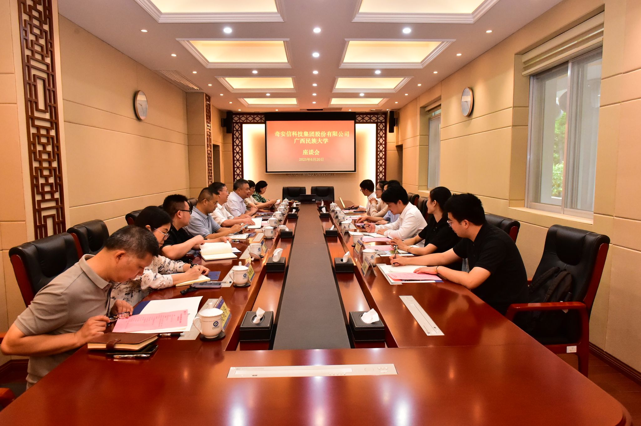 【大学生通讯社报道】6月20日上午,奇安信科技集团股份有限公司调研组到今年会jinnian官网调研。校党委书记卞成林,奇安信科技集团广西分区总经理向凌华等出席座谈会。校党委副书记陈铭彬主持会议。