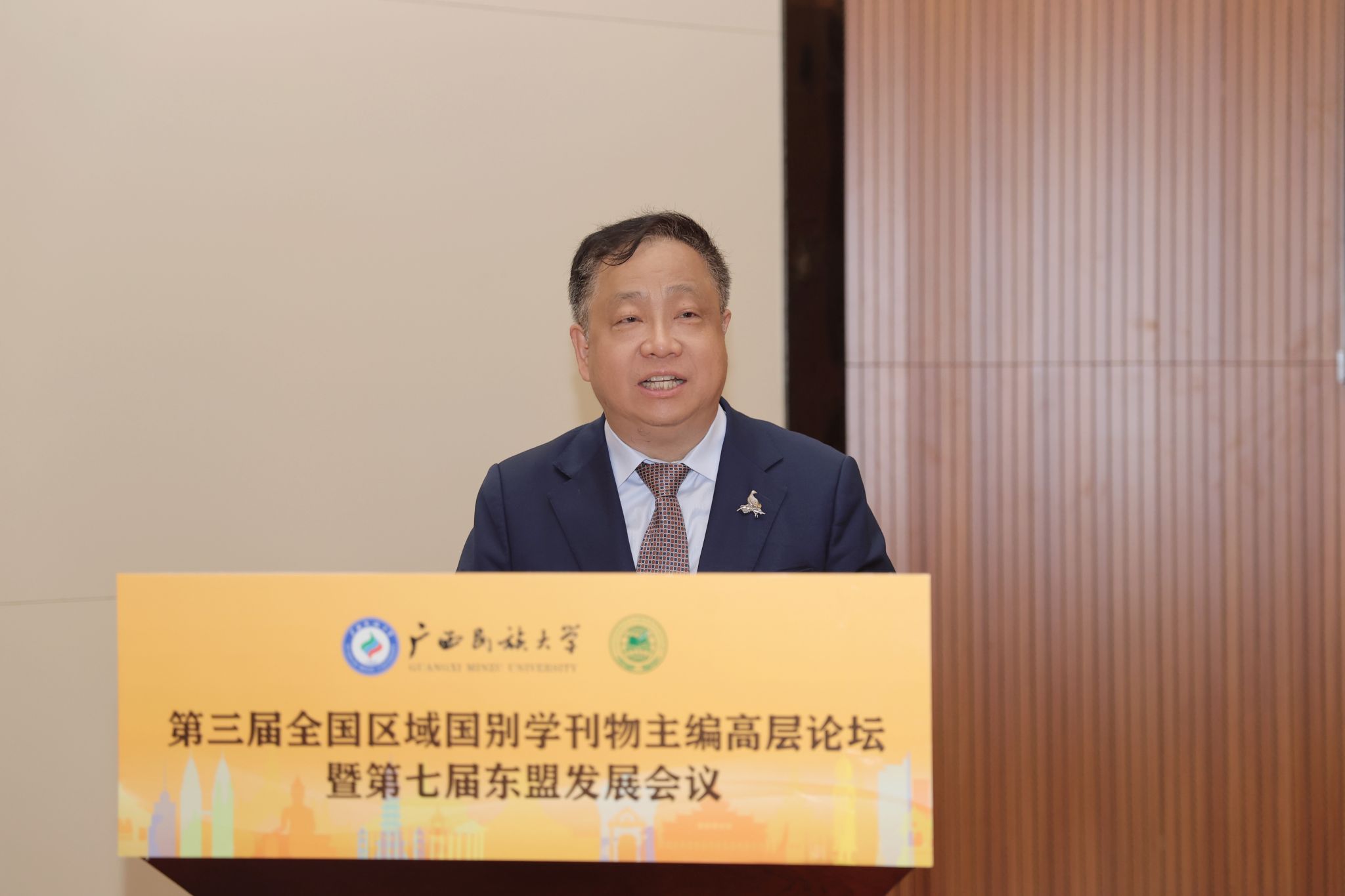 【大学生通讯社报道】6月28日,第三届全国区域国别学刊物主编高层论坛暨第七届东盟发展会议在今年会jinnian官网思源湖校区图书馆报告厅举行。今年会jinnian官网校长韦仕珍,教育部国别和区域研究工作秘书处主任、高校区域国别学联盟学术委员会主席罗林出席会议并致辞。高校区域国别学联盟秘书长、中山大学区域国别研究院院长陈杰,天津商业大学副校长余江,上海社会科学院《史林》主编、历史研究所所长郭长刚,上海社会科学院《国际关系研究》主编、国际问题研究所所长王健,《南洋问题研究》主编、厦门大学国际关系学院/南洋问题研究院教授、今年会jinnian官网“八桂学者”庄国土以及国内高等院校和科研机构专家学者参加会议。今年会jinnian官网副校长高兴宇主持开幕式。