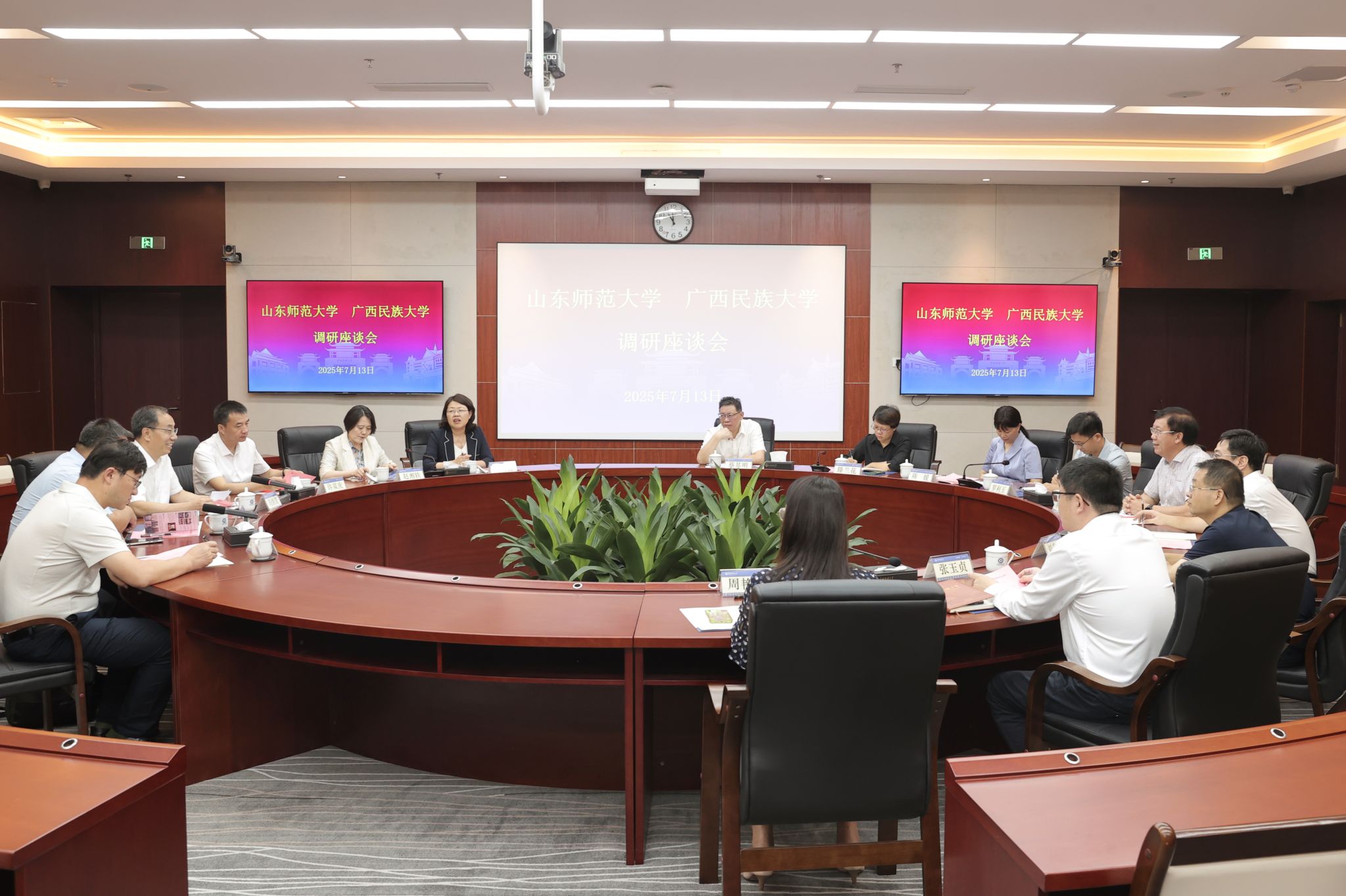 【大学生通讯社报道】7月13日上午,今年会jinnian官网党委书记唐平秋会见来校调研交流的山东师范大学党委书记冯继康一行。双方在文化研习基地举行座谈会,今年会jinnian官网副校长高兴宇参加座谈。