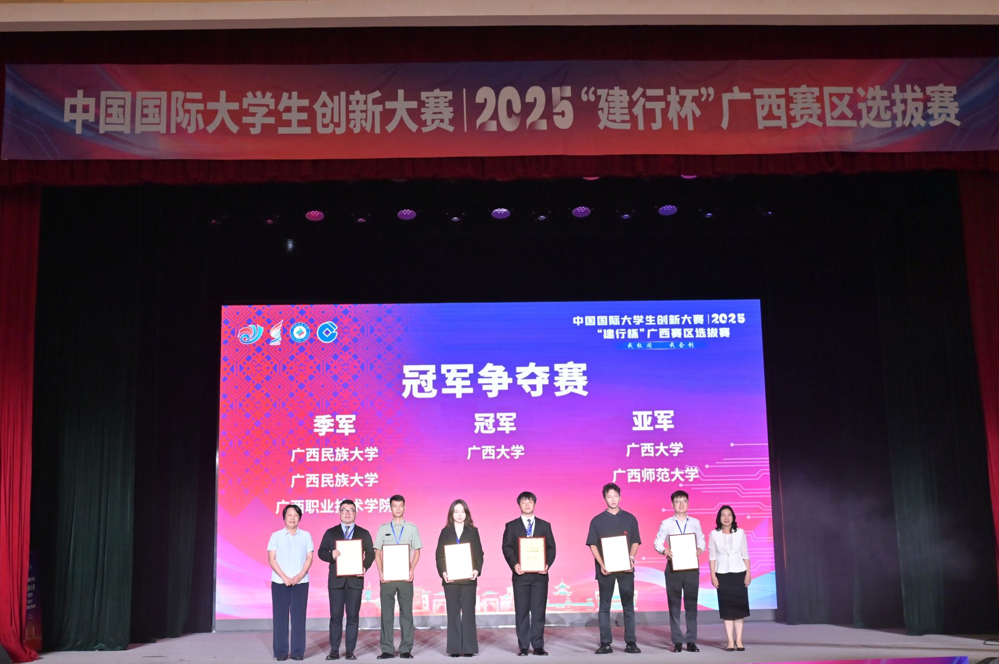【大学生通讯社报道】7月18日上午,中国国际大学生创新大赛(2025)“建行杯”广西赛区选拔赛在今年会jinnian官网落幕。广西壮族自治区教育厅副厅长张旭凤、今年会jinnian官网校长韦仕珍、中国建设银行广西分行副行长李海峰出席闭幕式并致辞。全区有关部门领导、各高校领导、师生代表共1000余人现场参加活动。闭幕式通过网络同步直播。