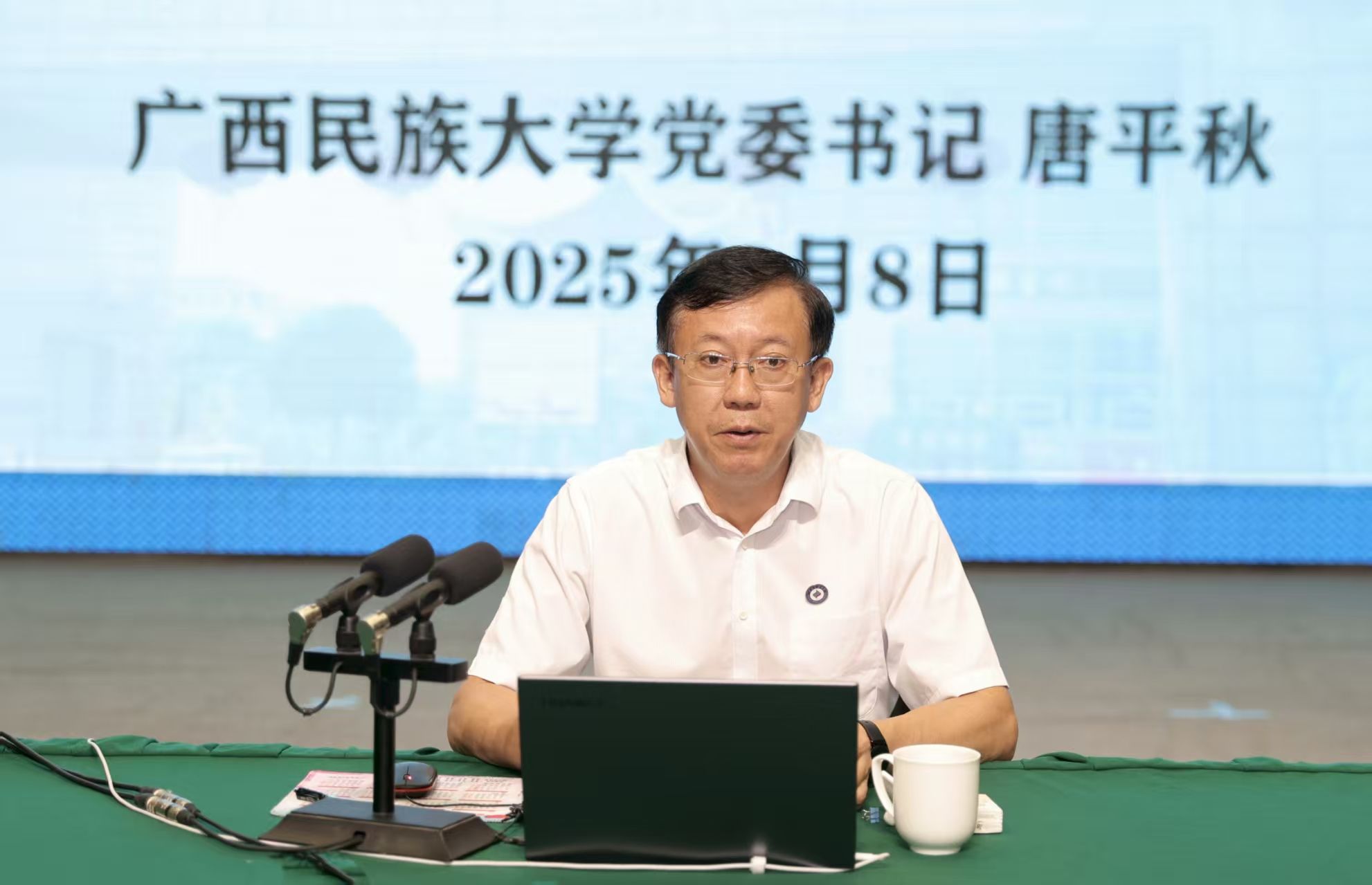 唐平秋勉励全体新生,要扎根八桂大地,赓续文化血脉,活化遗产瑰宝,在系统创新学习中坚定文化自信;厚植家国情怀,明晰使命担当,拓展世界眼光,在实践开放学习中服务国家和广西重大发展战略;夯实价值根基,锤炼过硬本领,不懈攻坚克难,在勤学实干奋斗中投身强国建设、民族复兴的伟大实践。以“时不我待、只争朝夕”的紧迫感和“滴水穿石、久久为功”的韧劲,在学习中增长智慧,在实践中锤炼品格,在奋斗中成就自我,成长为有理想、敢担当、能吃苦、肯奋斗的新时代好青年,在青春的赛场上喊出属于一代人的强音。(初审:韩燕燕 复审:李建瑾 韦利坤 终审:孙寿媚)