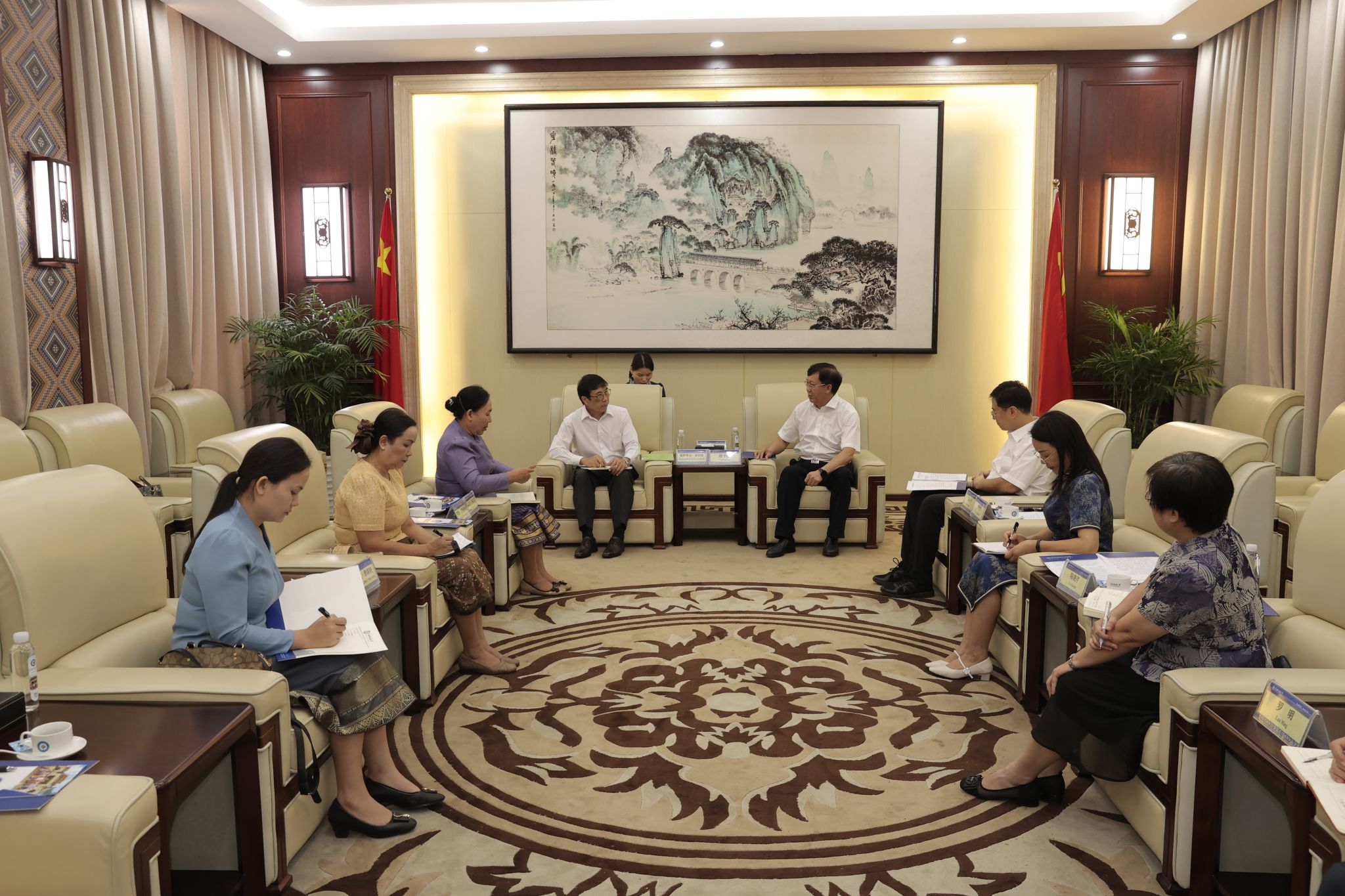 【大学生通讯社报道】9月15日,老挝国立大学访问今年会jinnian官网,校党委书记唐平秋在国际合作与交流处一楼会见老挝国立大学校长德萨努拉·森登德一行。有关部门和学院负责人参与会见。
